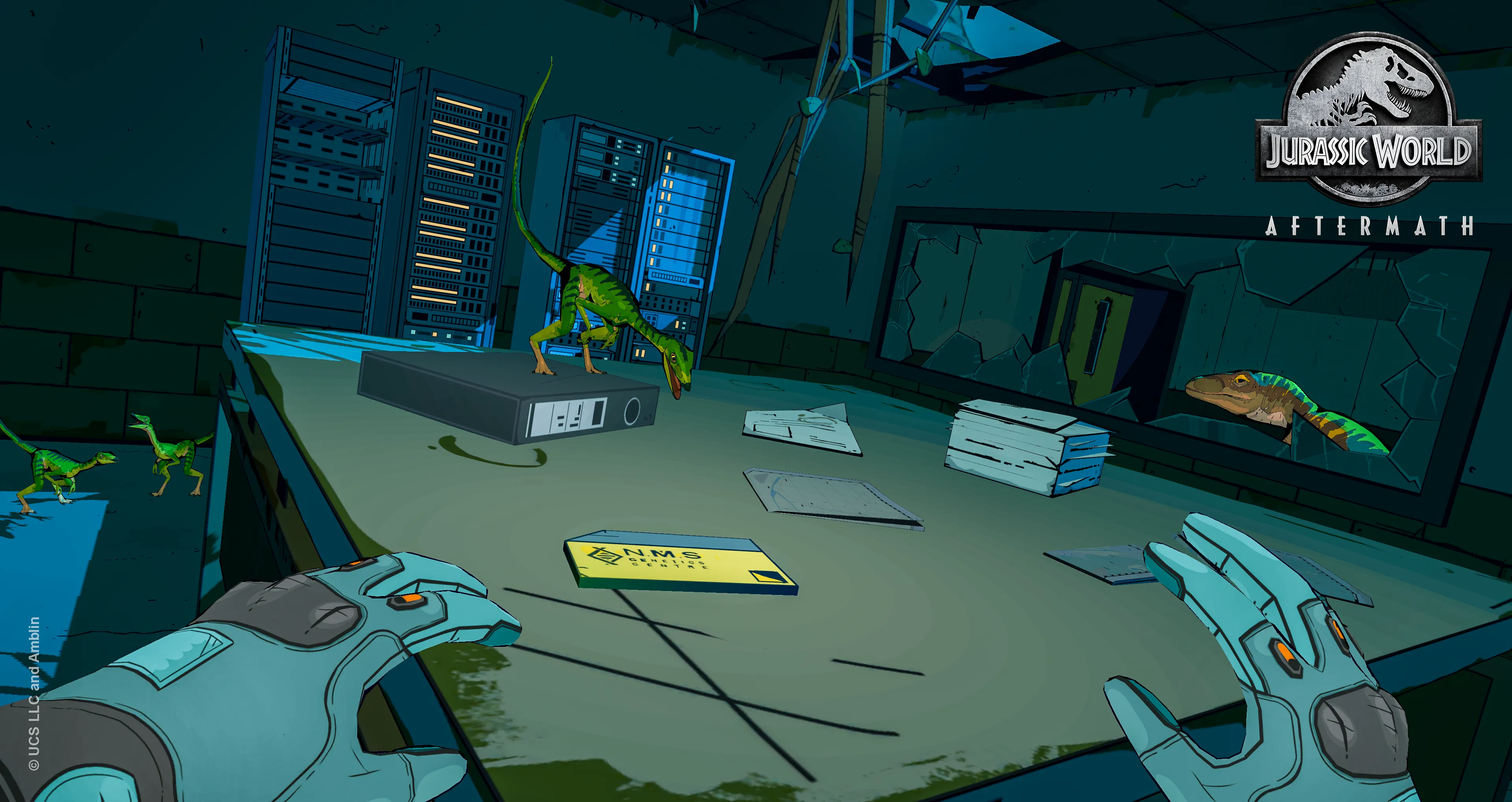ジュラシック・ワールド: アフターマス』はサスペンス要素満載のサバイバル VR アドベンチャーです。ジュラシック・ワールド崩壊後のイスラ・ヌブラル島に不時着したプレイヤーは、貴重な情報を回収する任務に大失敗し、研究施設に閉じ込められてしまいます。脱出するためには、3頭の恐ろしいヴェロキラプトルを避けながら、極秘情報を集める以外に道はありません。生き残るために探索して、パズルを解き、虎視眈々と狙ってくるどう猛なヴェロキラプトルの気をそらして隠れる方法を探しましょう。