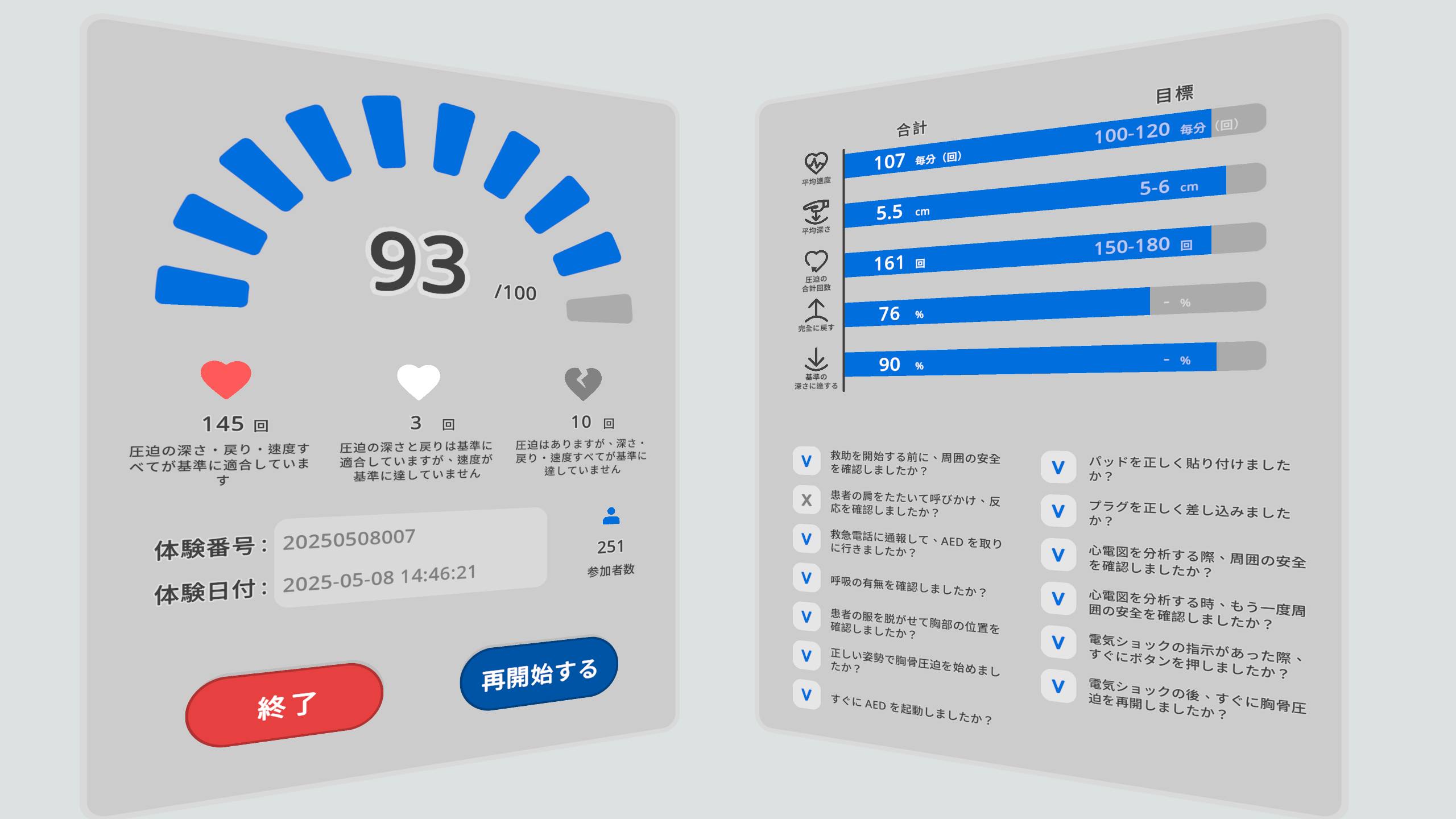 日本の『心肺蘇生ガイドライン(JRCガイドライン)』に基づき、学校・企業・教育機関・団体トレーニング向けに設計された、学習と評価の完全なシステムです。
