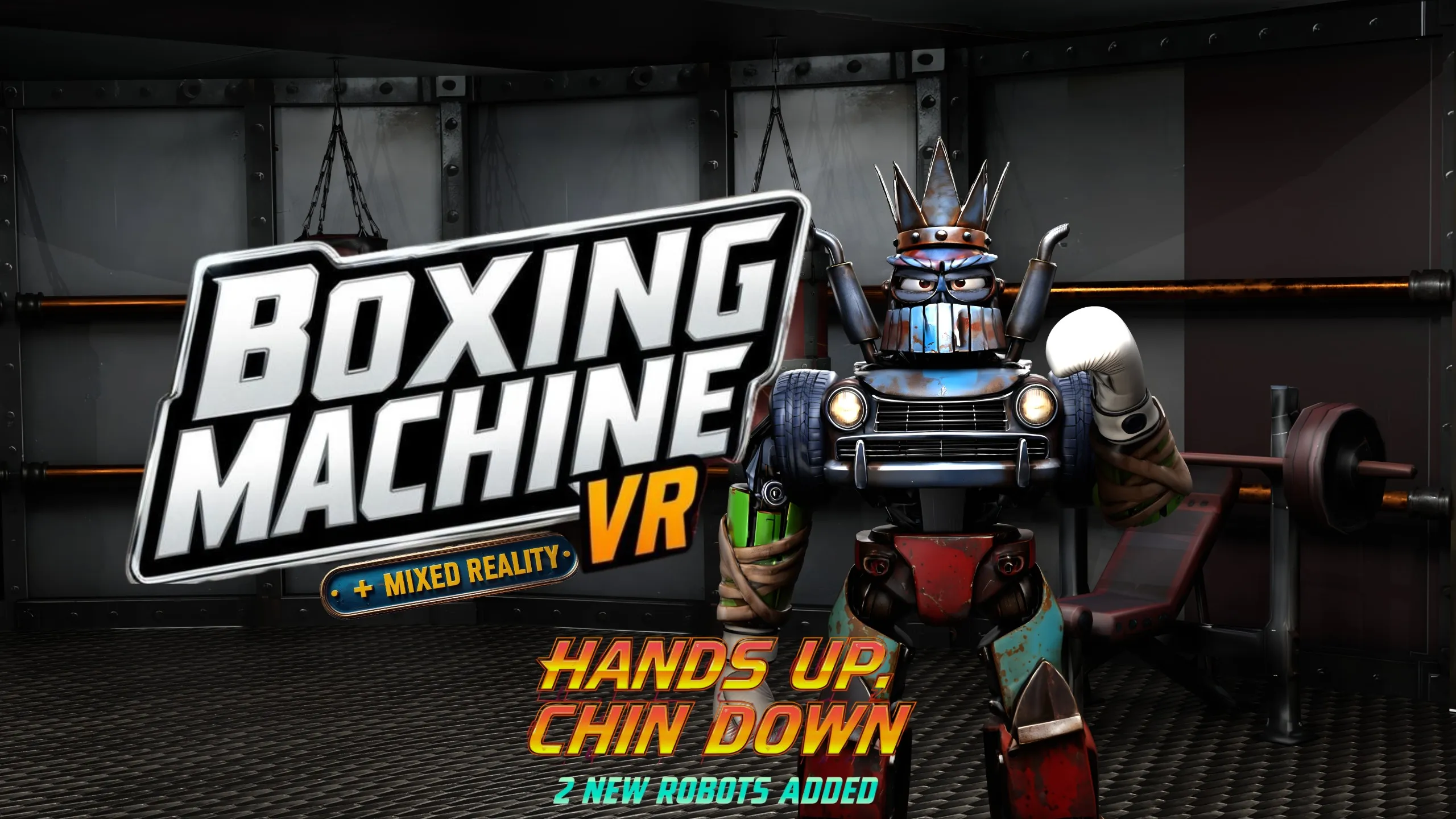 アと蒸気のジムでロボットを打ち砕け!スパーリングモードで自由に戦うか、リズムモードでビートに合わせてパンチし、王座を勝ち取れ!