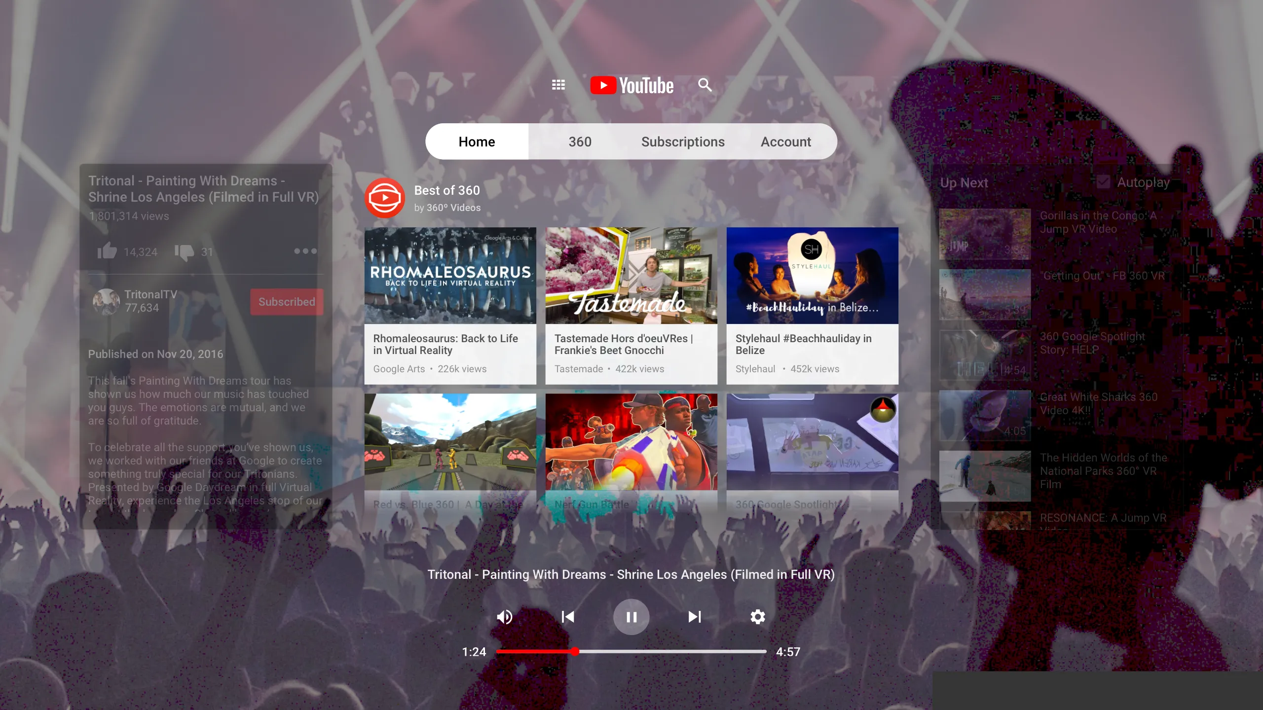 気に入りの YouTube チャンネル、動画、クリエイターをバーチャル リアリティで楽しめま‏す‎。