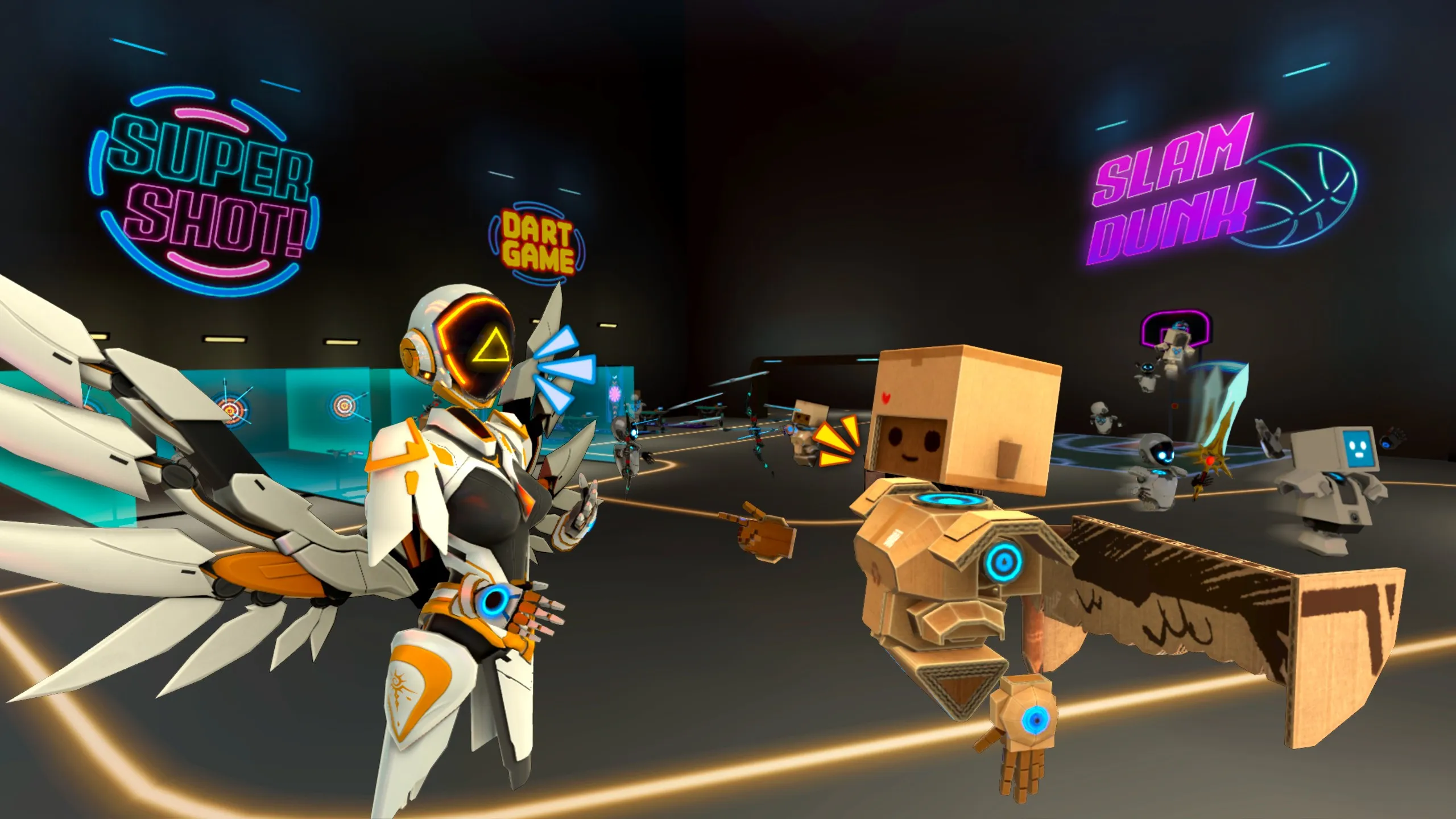 また、ラウンジはダーツ、バスケットボールフープ、巨大ボールを備えたサッカーフィールドも備えており、メインプレーに集中するだけではないこのゲームを構成する展開を見せています。 ラウンジやアリーナで楽しみましょう!投稿者:Oipjo