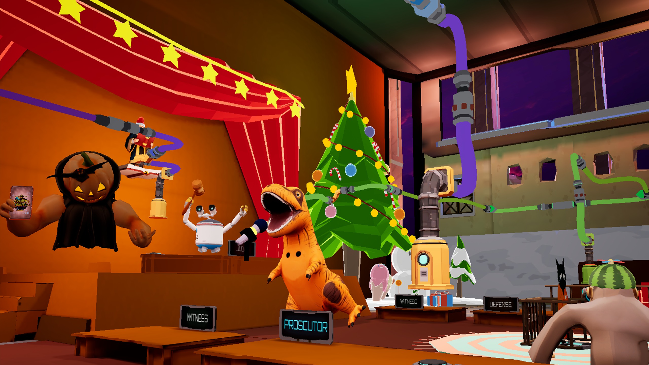 私は弁護士として演じ、裁判の半分をゴリラのように天井からぶら下がって「証拠」を提示した。 裁判官はガベルを激しく叩きつけ、裁判官は目撃者に紙吹雪を撃ち続けた - 誰がクッキー瓶を盗んだのかさえ分からなかったが、VRヘッドセットが霧になるまで笑った。 真剣なゲームが嫌いで、カオスな友達の時間が好きな人に最適!投稿者:未掲載