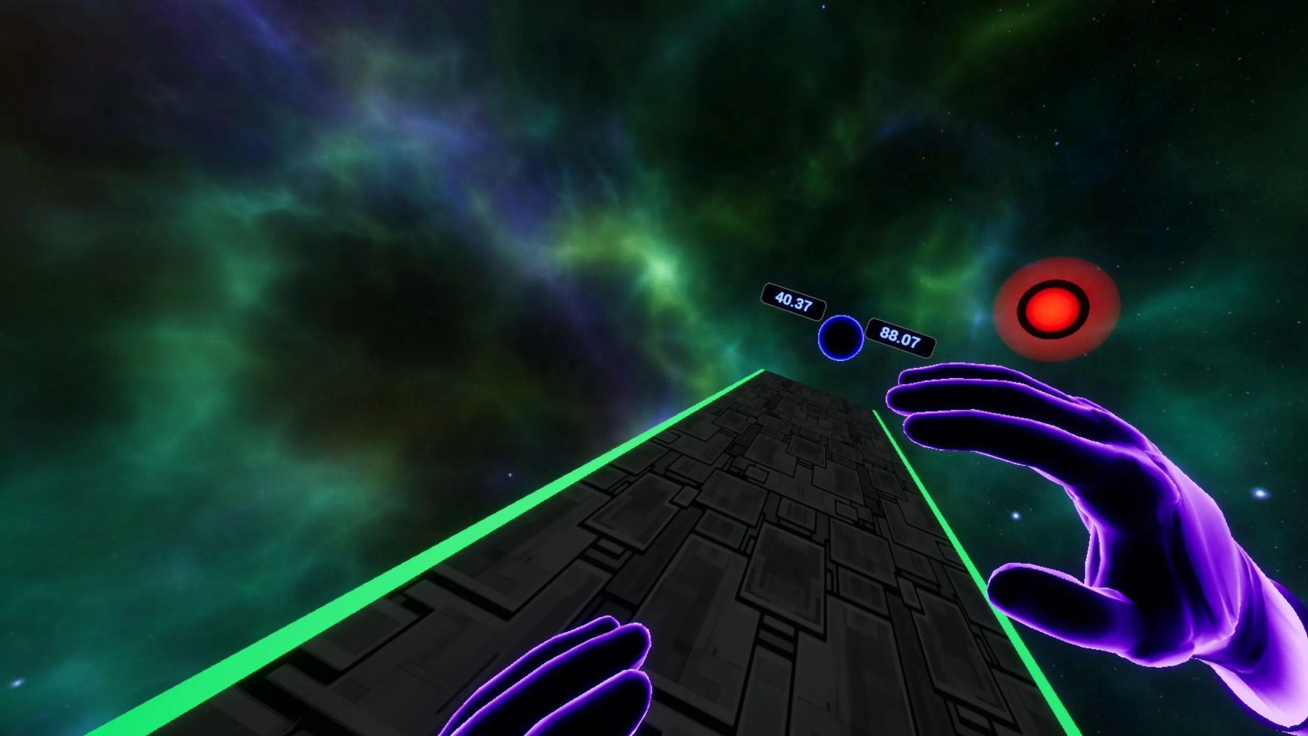 目標はシンプルです:スピードが増え続ける間、できるだけ長く持続してください。 7つの青い物体に触れることで、健康を取り戻すことができます。ゲームプレイに素敵なリスク/報酬層を加えます。 全ては完全にスキルベースで、反射神経、調和、集中力に頼っています。