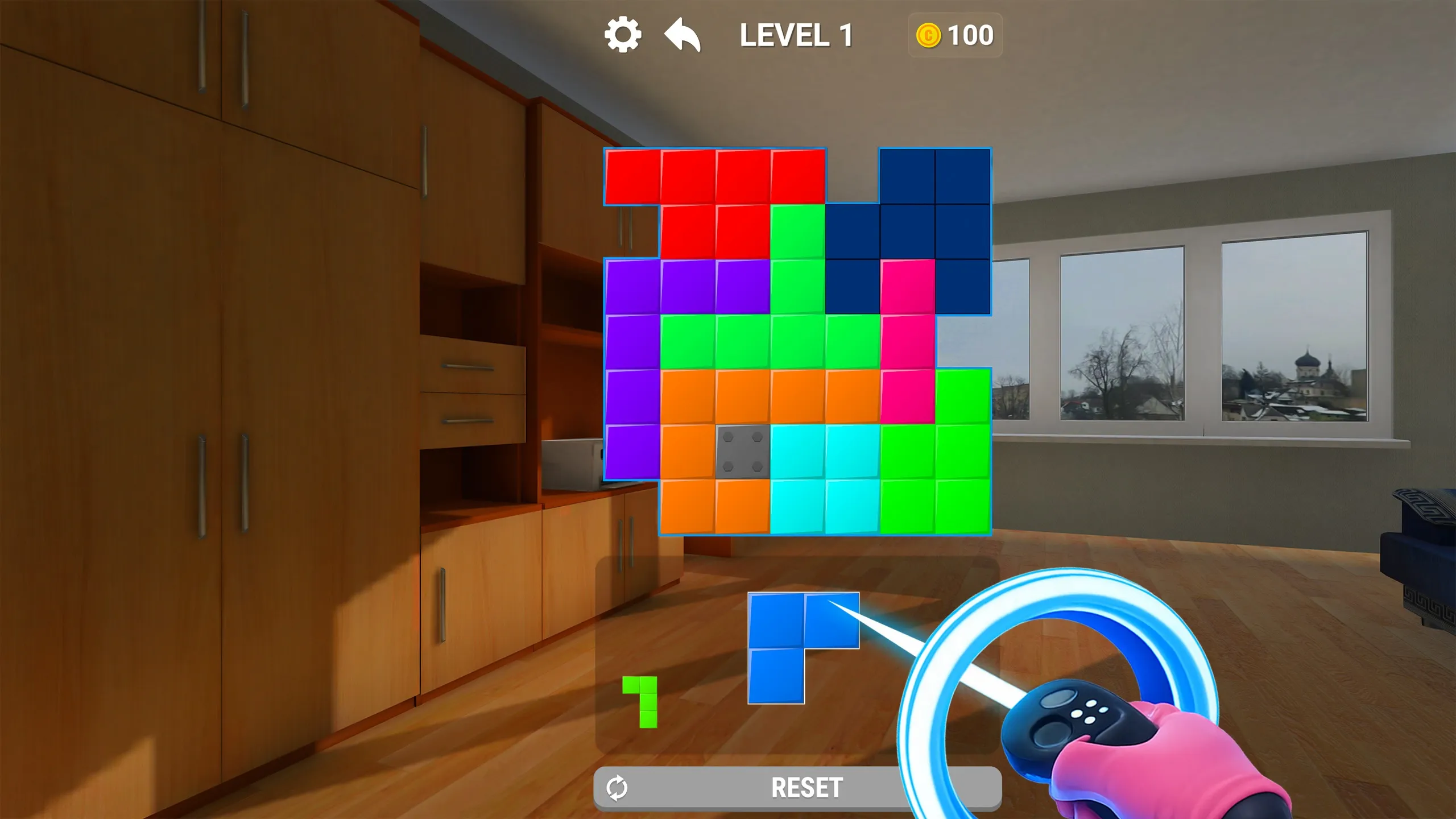 直感的なVR controlsで、ブロックを精密に配置する感覚を楽しめます。