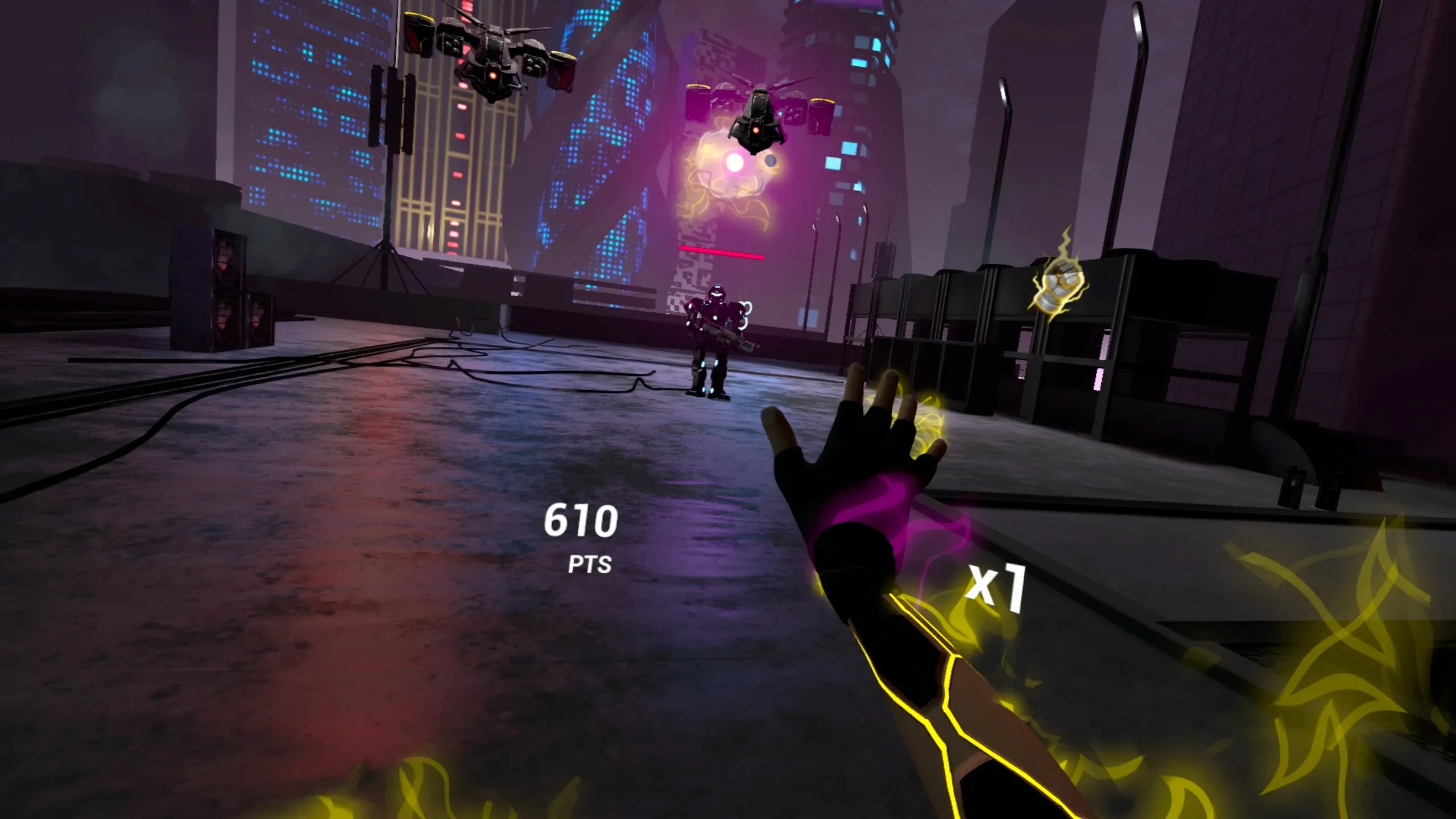 Kynetikはあなたの体をエネルギーとスピードの武器に変えるSFハンドトラッキングウェーブシューターです。 手しか使わずに、強力な爆発を放ち、敵の火をそらし、リズムのような速い戦闘場で強烈なロボットの波を粉砕する。