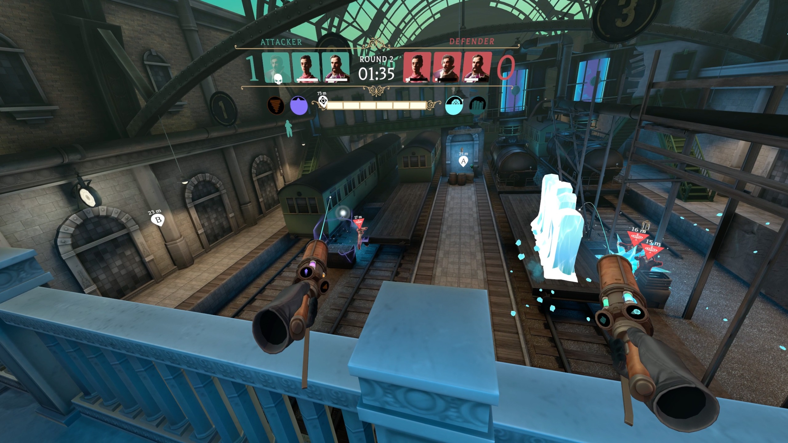 ワンド・アライアンス』は3人のチームで戦う対戦形式のVRマルチプレイゲーム。高速で展開する魔法のデュエルがプレイヤーを待っている。クラスを選択し、呪文を選んで、ストリートでのバトルに飛び込もう。自チームの目標を達成するか、敵チームを殲滅して、輝かしい勝利をその手に掴め。しかし、戦いの流れに乗って攻撃を咄嗟にかわす素早さのない者は、たちまち魔法の火球の餌食となるだろう。