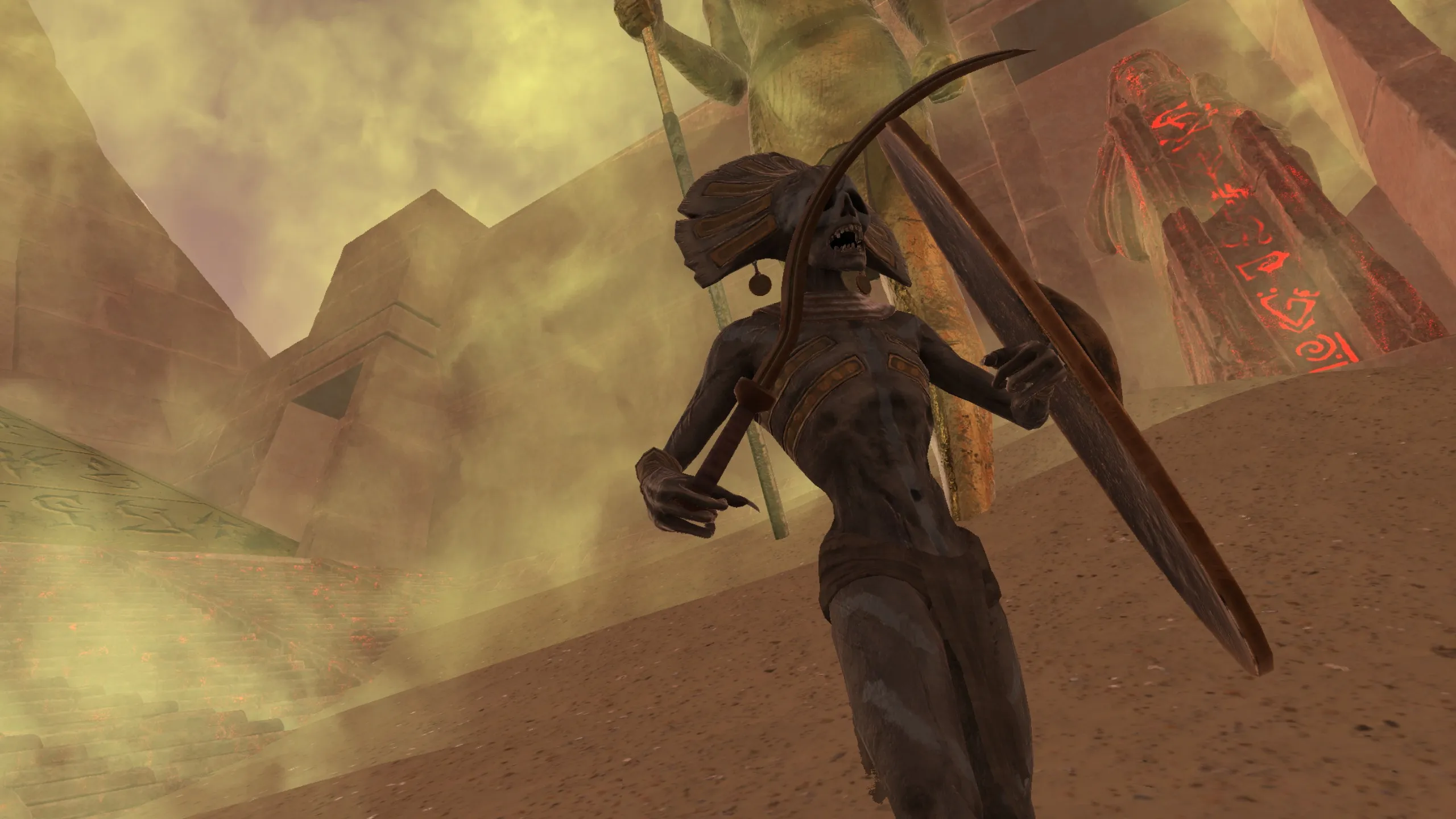 彼の次元に暗い呪いをかけたファラオの呪われた軍隊を生き残れ。 様々な武器を使って敵と戦い、あなたのポータルに戻る方法を見つけましょう。 目に見える敵と戦うか、ステルスを使うか。 VRで見たことのない世界を体験して、今すぐ旅を始めよう。