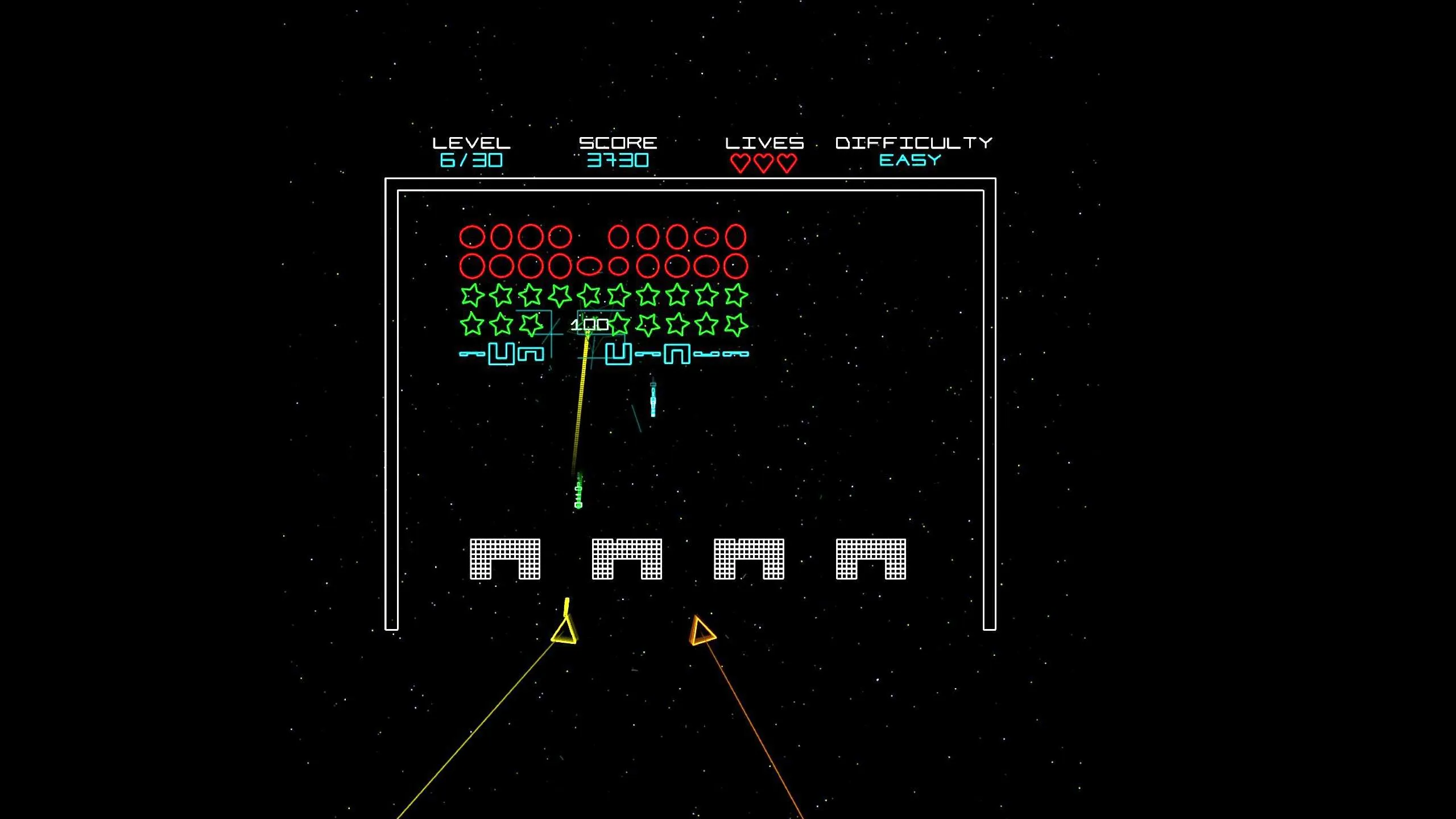 グラフィックはカラーベクトルです。古典的なテンペストのように、実際のゲームはテンペストとは異なりますが。投稿者:未掲載