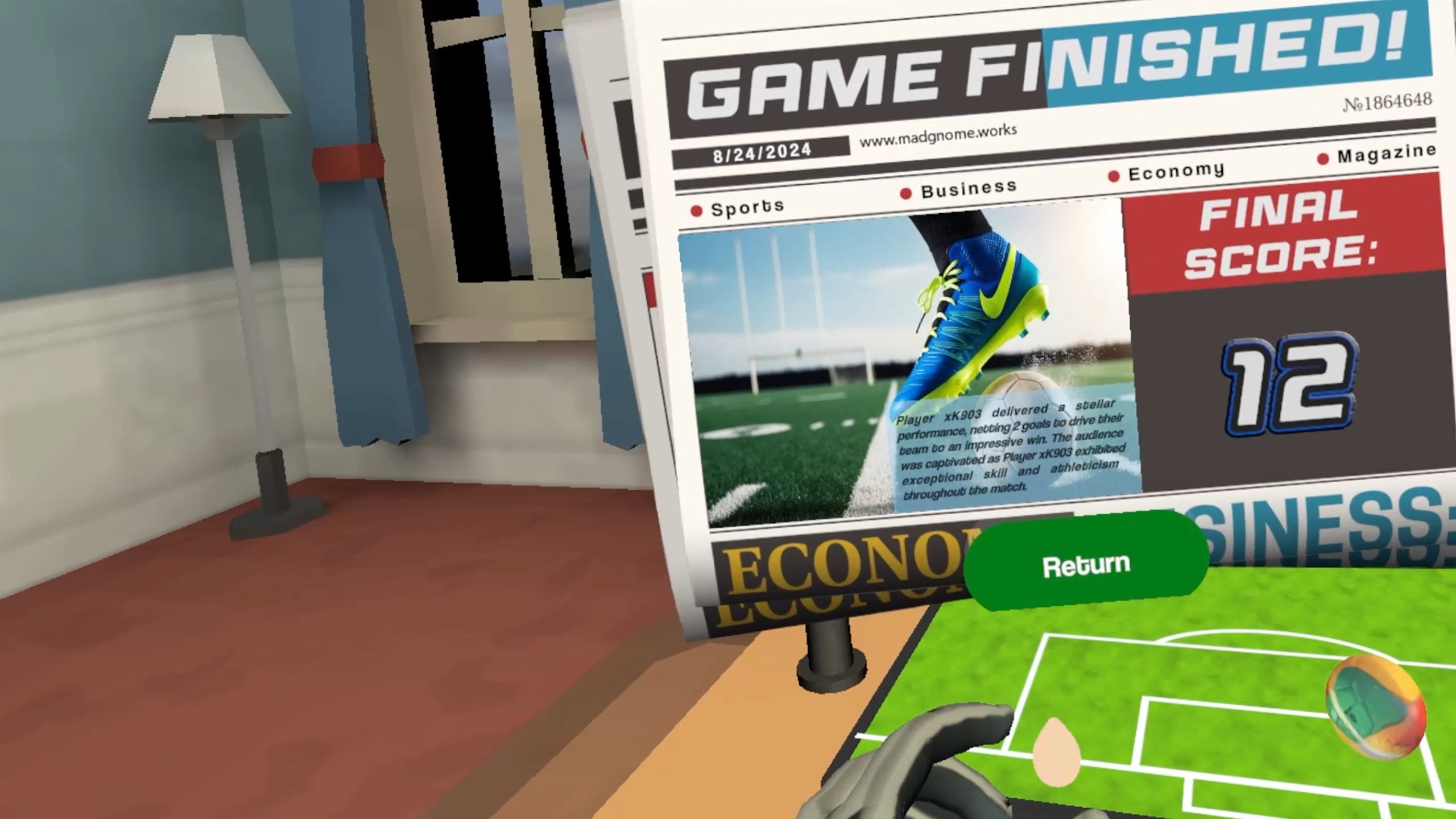 ハンドトラッキングはとても細かいけど、ゲームのコンセプトが大好き。 もっと正確なキックのためにコントローラーを使えるようになれば、それは素晴らしいことです。 また、これは友達と対戦するのに楽しいマルチプレイヤーになるでしょう。投稿者:未掲載