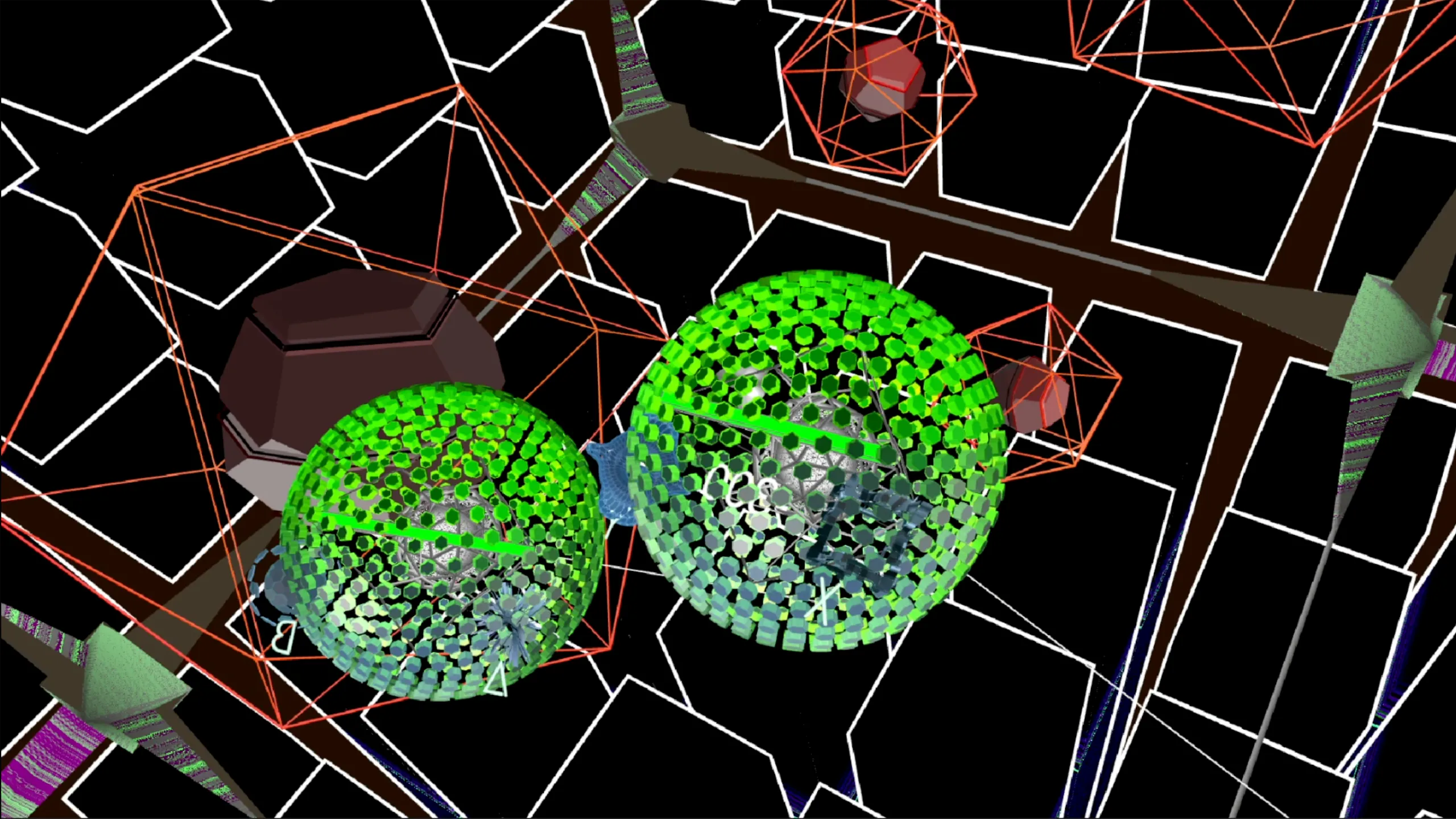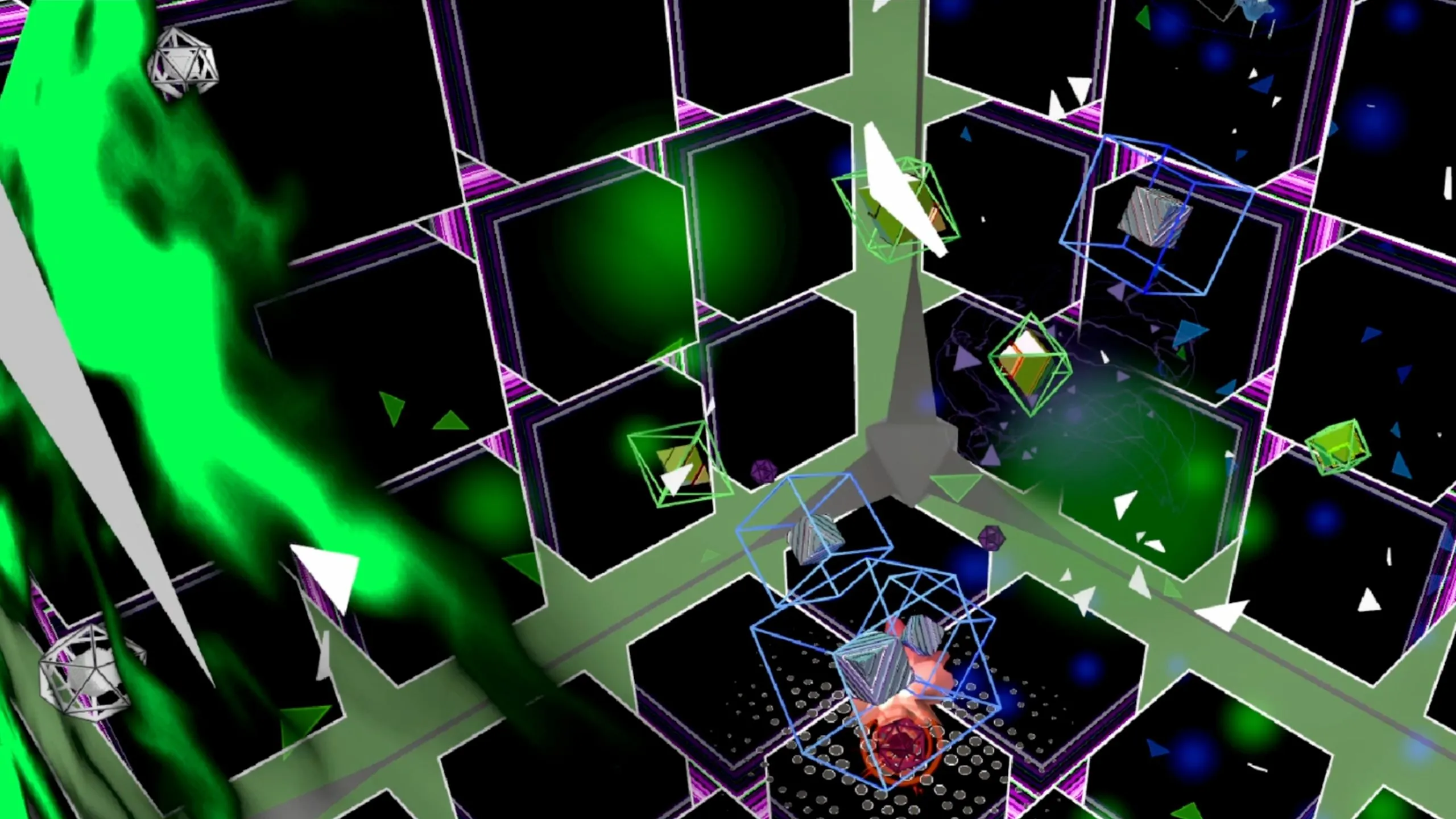 AUDIONは、「空間戦略」と速い物理的なゲームプレイに焦点を当てた抽象的なシングルプレイヤーのアーケード型VRゲームです。 小惑星が3Dで幾何学戦争に出会うと思う。