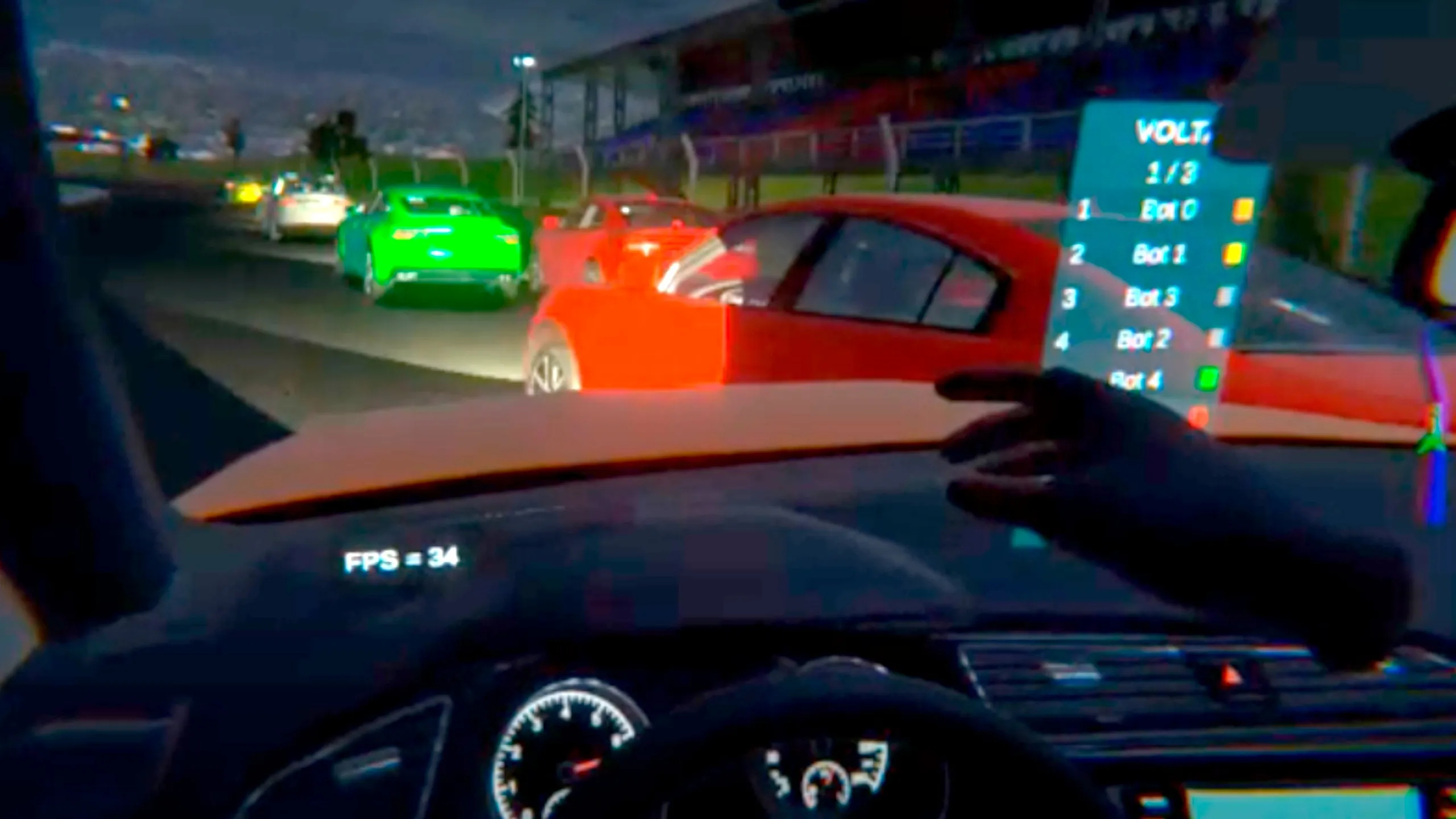 多くのvrゲームは異なるアプローチを試します。あなたの公式が一番楽しいことに近いと思います。 ザ・A i drivers are Great, I can see the drivers in the car as well 👍 道路のストリークと芝生とバックライトが