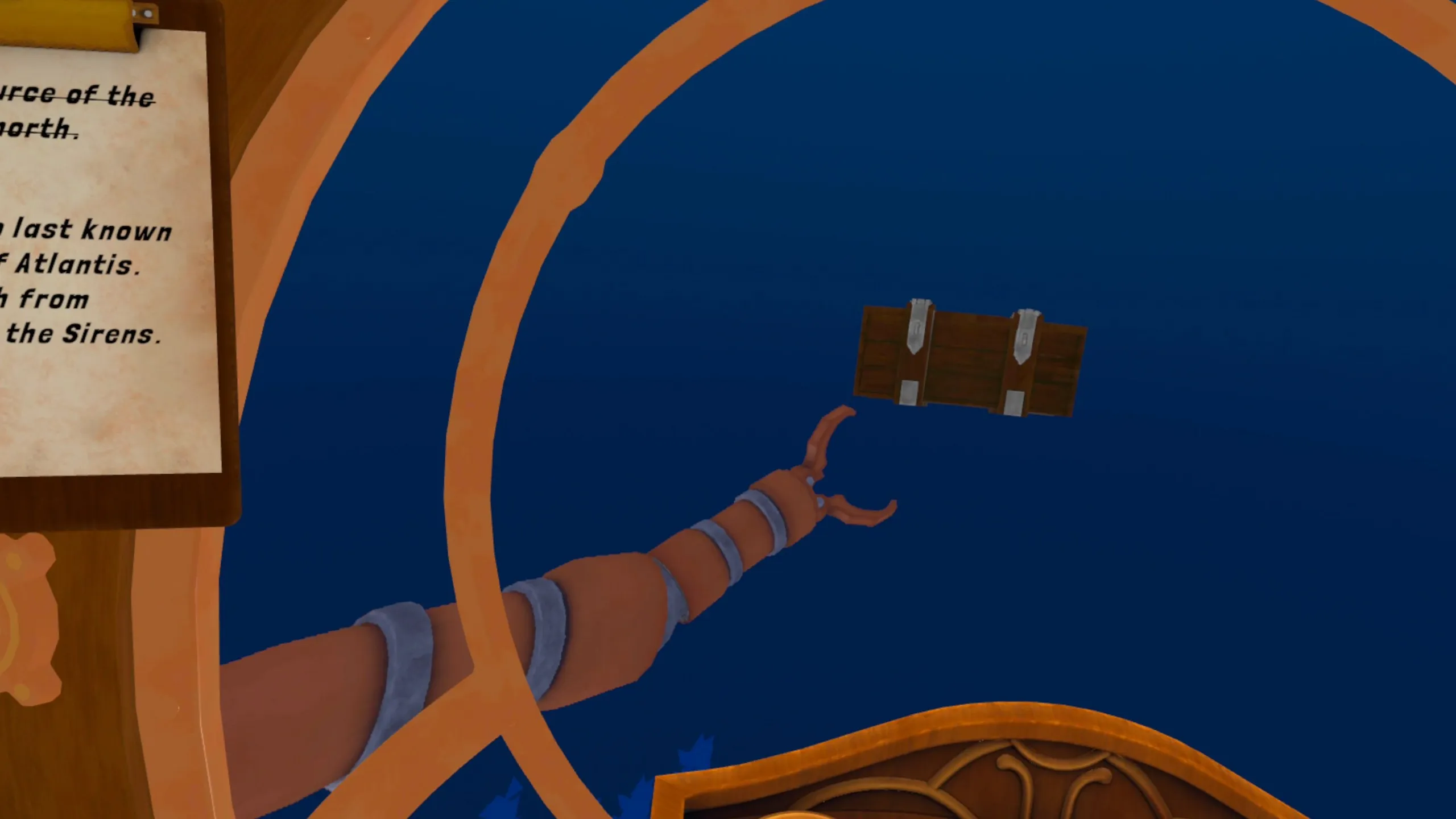 VR/MRの相互作用は、司令局にあります。漏れの検知と修理、圧力管理、グラップリングフックを使用して宝物を回収し、潜水艦を守ります。 空間インターフェイスは直感的で、MR要素(壁や家具に取り付けられた圧力計)が没入力を高めます。投稿者:Majerik