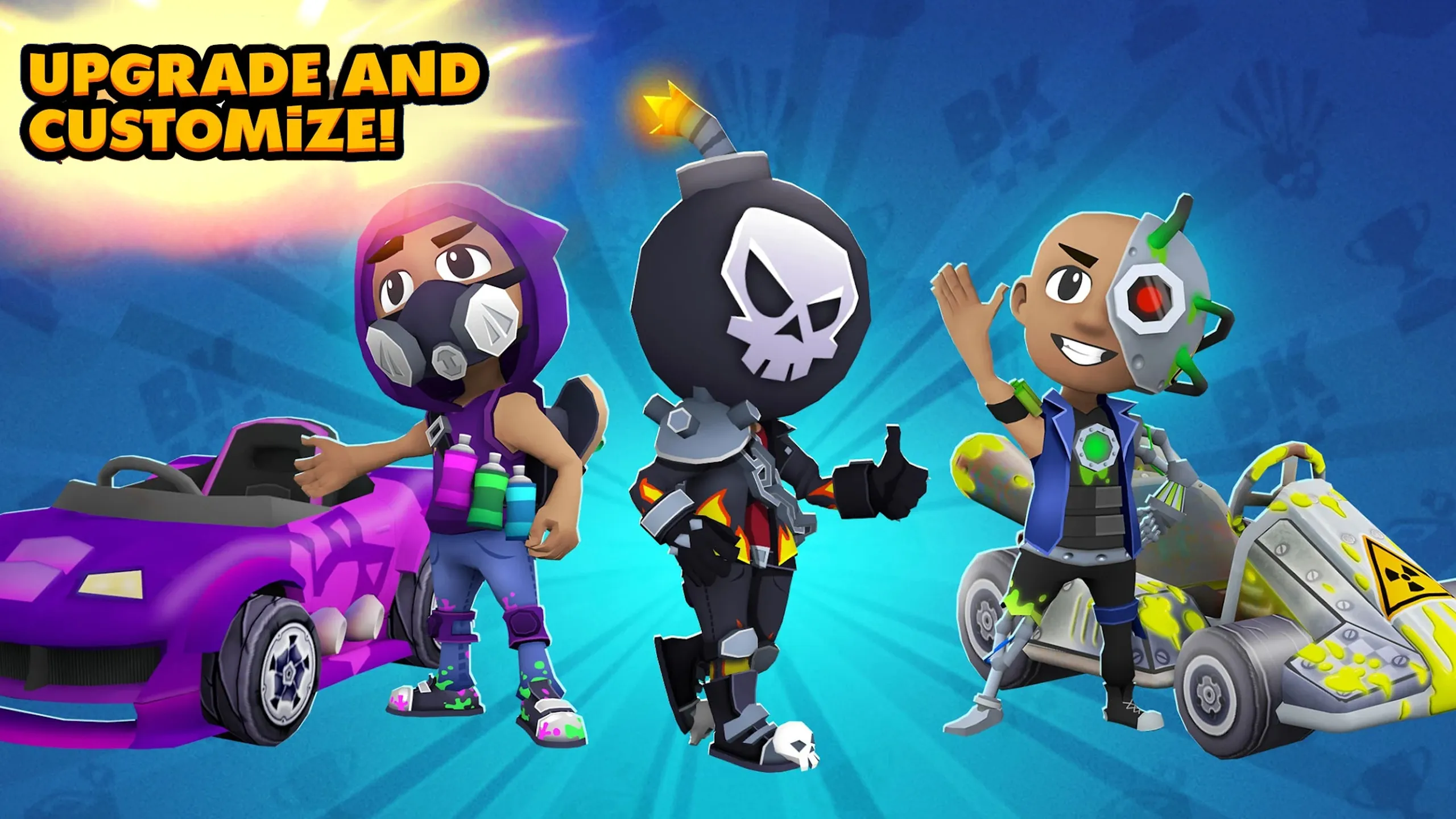 Boom Kartsは無料でプレイできるクロスプラットフォームカートレーシングゲームです。アクション満載のマルチプレイヤーレースで車輪の後ろにプレーヤーを置きます。 迅速なピックアップ&プレイセッションのために設計されたBoom Kartsは、アーケードレースのスリルとパワーアップやトラップの予測不能さを融合させ、2つのレースが決して同じものではないことを保証します。 あなたはコーナーを漂流し、完璧なタイミングでブーストを発射し、あなたのライバルを爆発的なアイテムで妨害することができます。 その途中で、ドライバーアバターやカートのロック解除とカスタマイズ、カートパーツのアップグレード、新しい塗装の実験、そしてユニークなスタイルを見せびらかすことができます。 複数のトラック、モード、プログレッションシステムを備えて、Boom Kartsは、軽やかな楽しみを求めるカジュアルなレーサーやトップリーダーボードスポットを追いかける競技選手であろうと、あなたのために何かを提供します。 モバイル、VR、ブラウザで利用可能なBoom Kartsは、どこでプレイしてもスムーズでアクセスしやすいレース体験を実現することを目指しています。