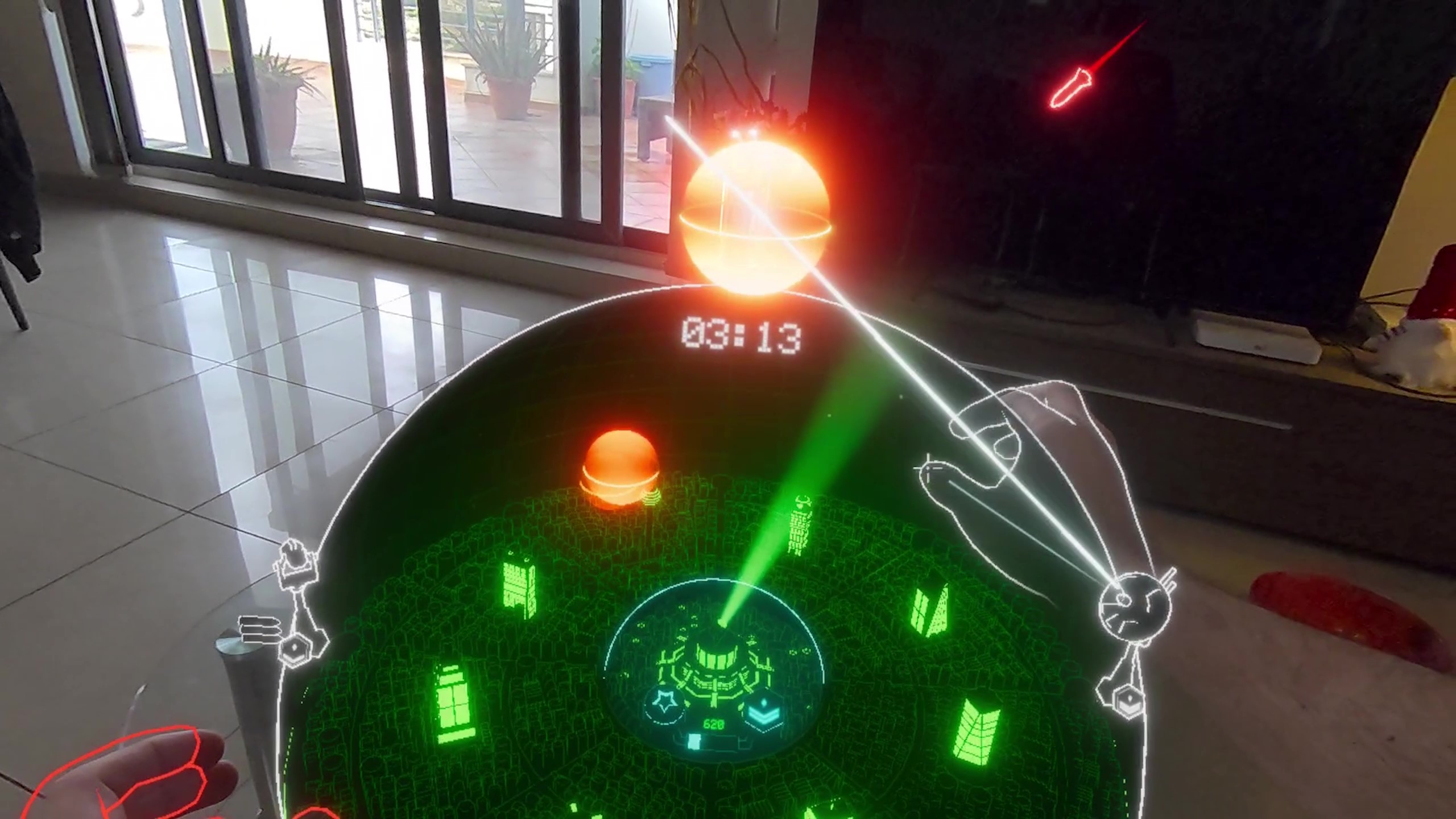 これはミサイル命令のリメイクの超素敵なミックスリアリティ! そして、それはあなたの手でそれを演奏する完璧な方法! 目の前のベクトルグラフィック!