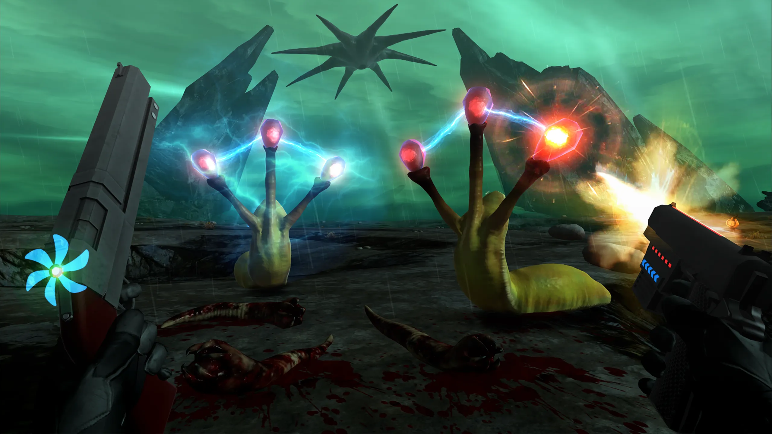 これはあなたが探していたエイリアンモンスターVRゲームです。 まともなグラフィック、レベルアップ、簡単なテレポート、標準的な動きのオプションを持った素晴らしいシングルプレーヤーマルチレベルシューター。 プレーするのは簡単だけど、勝つのは本当に難しい。 本当に所有する価値のあるVRクラシック。 それは、古いジュラシック・パークやターミネーターのアーケードシューターのようだ。常にシーンの移り変わりなく、より良いグラフィック、そして止まらないエイリアンのモンスター。