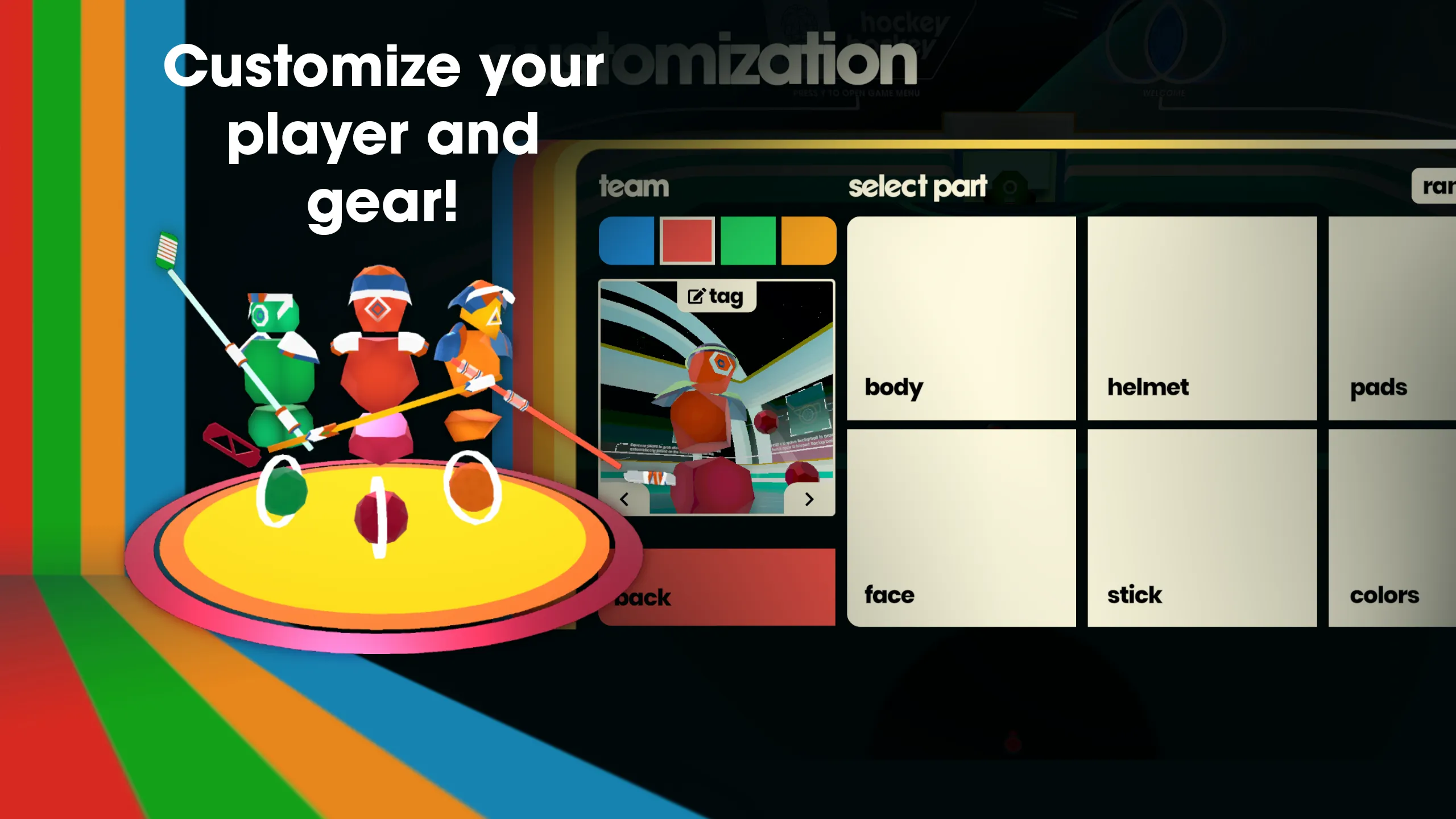 - プレイヤー、ヘルメット、パッド、スティックをカスタマイズ