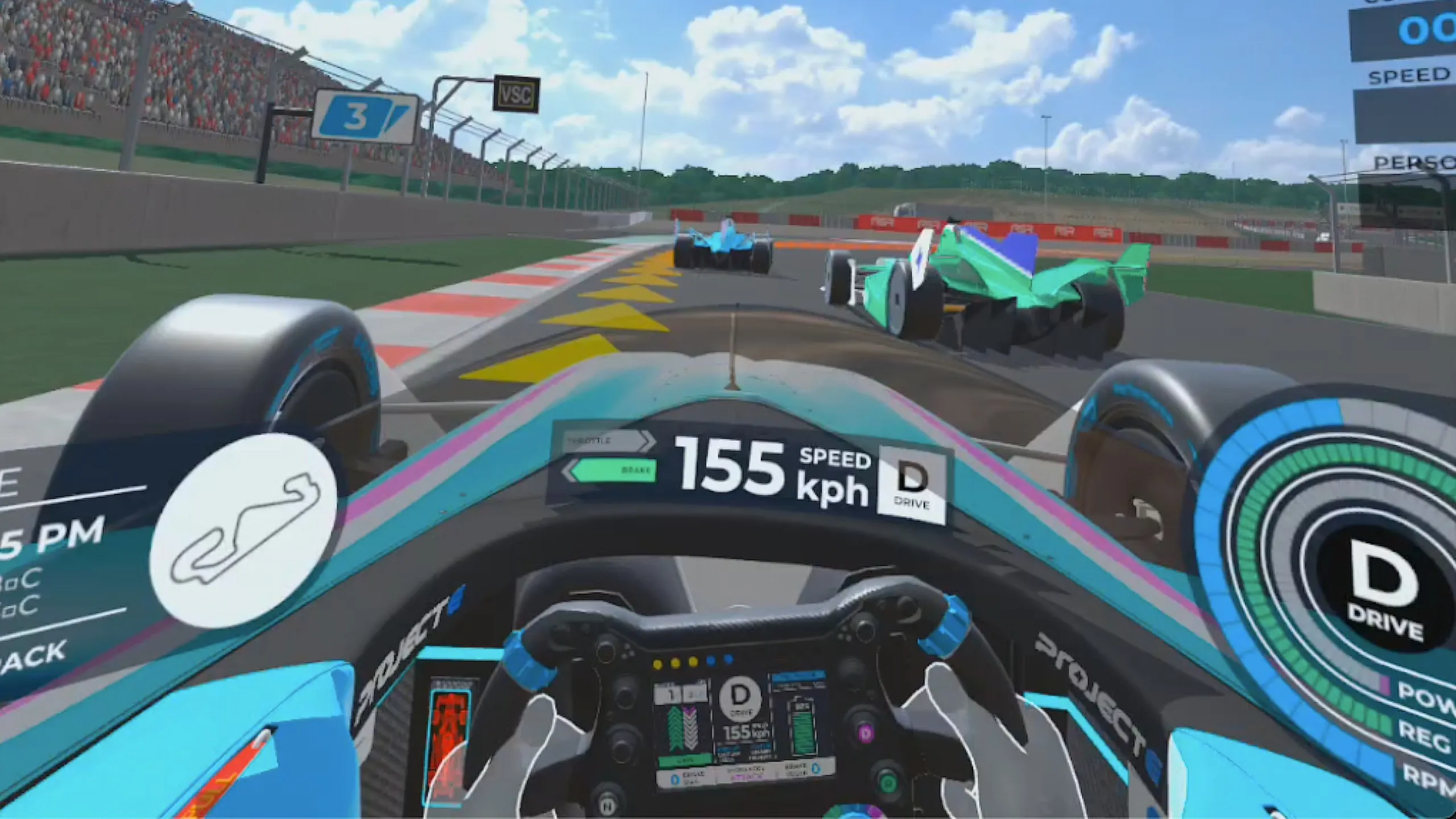 高性能な電動シングルシーターのバーチャルコックピットに足を踏み入れると、リアルなVRレーシングシミュレータの急須を感じてください。 Project Eは、電動シングルシーターの運転と消費戦略の管理をシミュレートするユニークで没入感あふれるVR体験です。 プロジェクトEは、限られたリソースの中でも、持続可能な方法で最高のパフォーマンスを発揮することが目標である時代の課題を表すスポーツメタファーを使用しています。