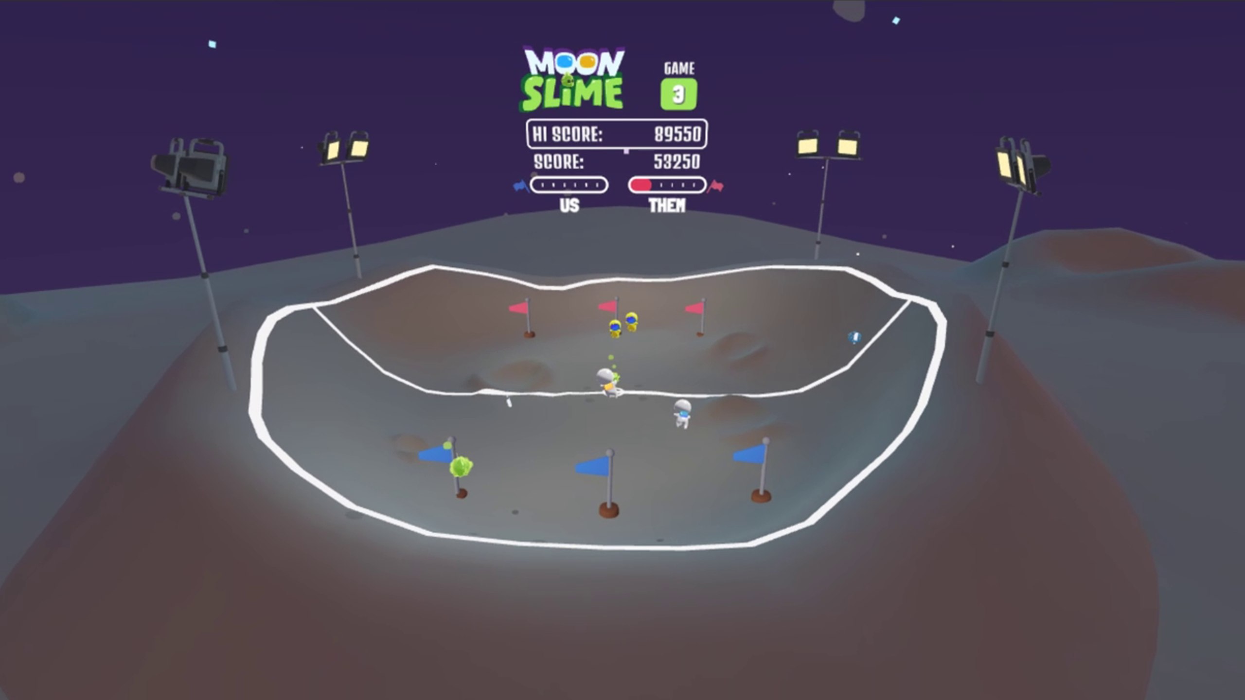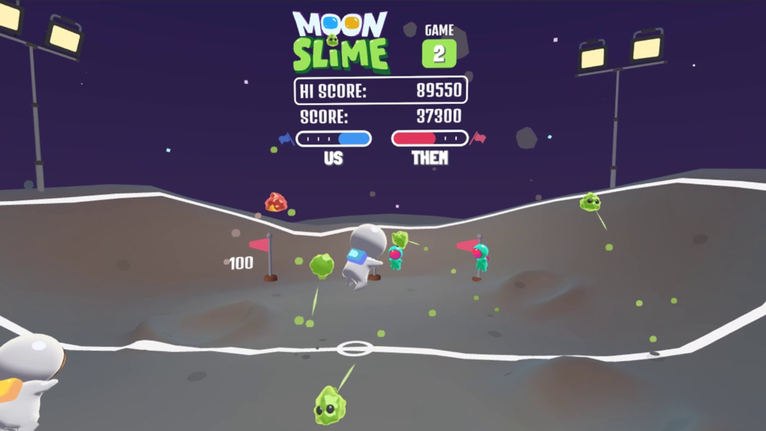 月の上で2人の宇宙飛行士としてプレイし、何でも行けるクレイジーなスポーツでスライムボールを叩きましょう! 敵は賢くなる、それであなたのスコアはどれくらい高くなる?