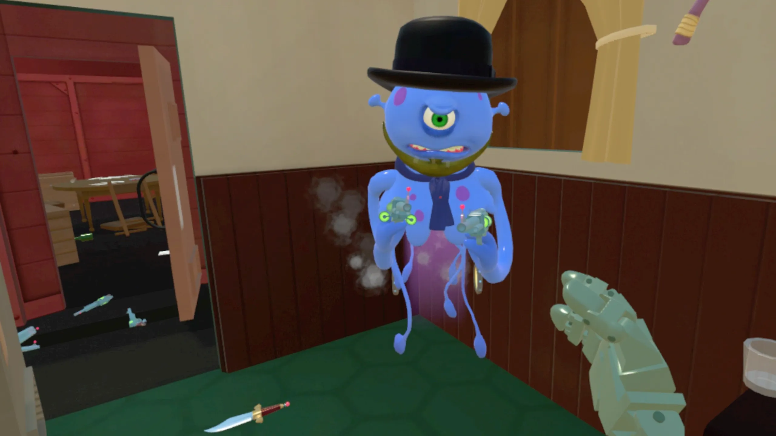 カウボットとエイリアンズは、サルーンバースで激怒のPvPマルチプレイヤーVR乱闘! 自由なムーブメント、レーザー精密なガンプレイ、複数の競争モード、全てを武器に使えるカスタムネットワーク物理システムが、非常に満足度の高いVR騒動を実現!