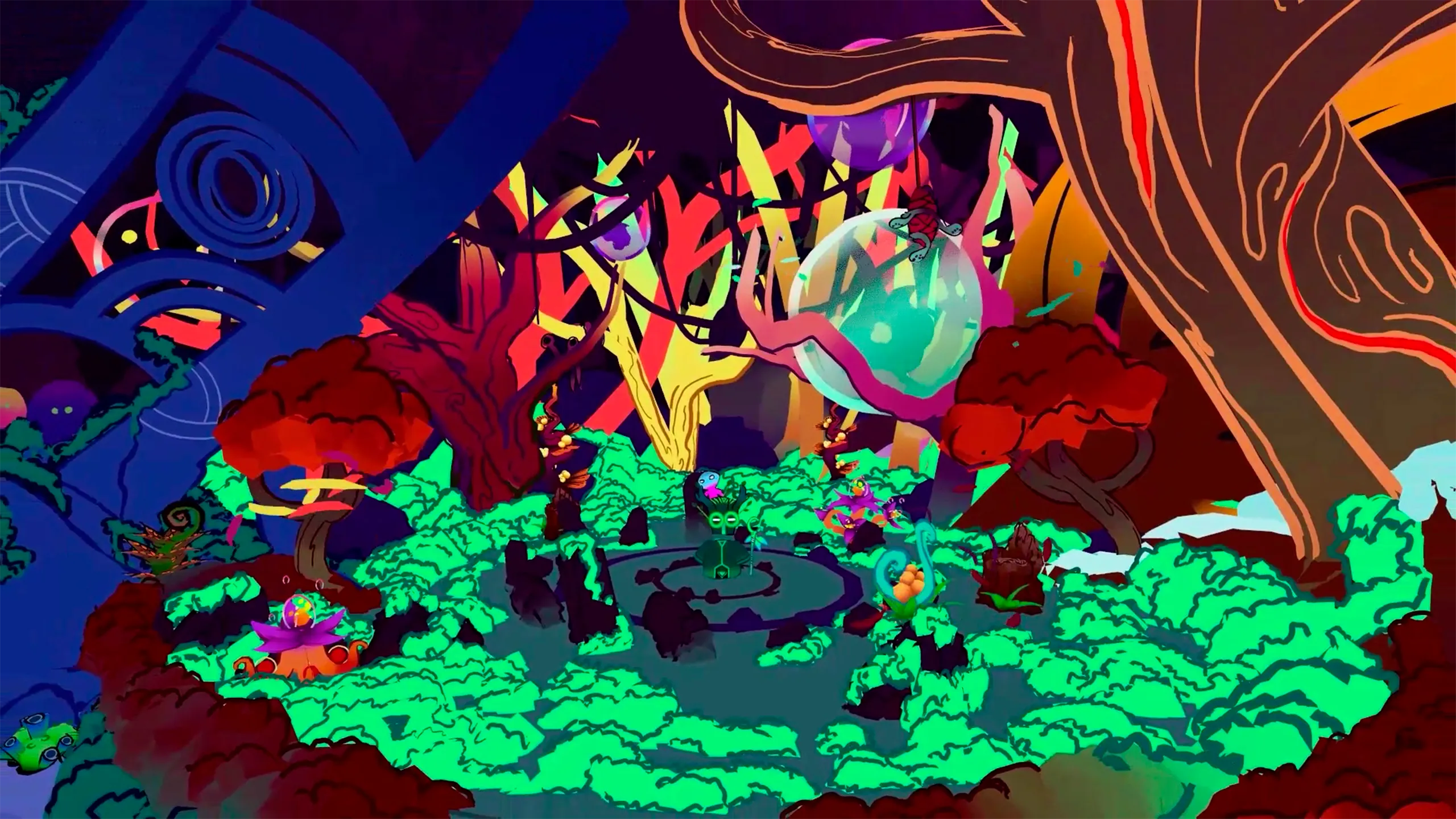 アートスタイルは素晴らしい。 この光景を近くで見れば見るほど、小さな隠れた生き物や面白いイースターエッグを見つけ始めます。 ジオラマ全体(プレースペースだけでなく)を見渡すことに価値があります。 ネオンカラーパレットを楽しむ。