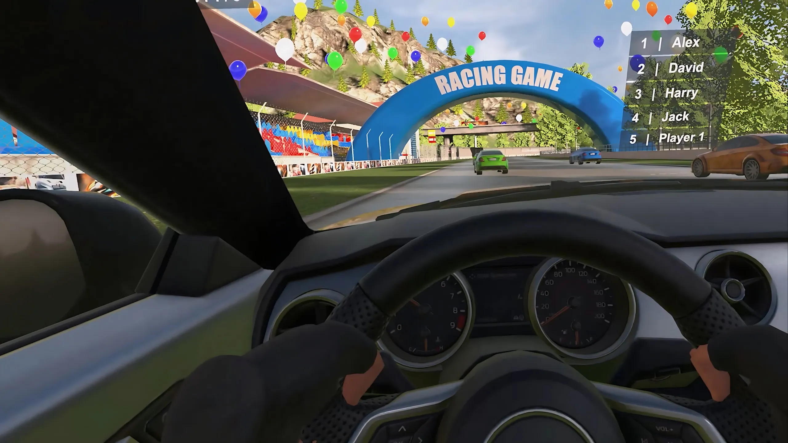 このVRレースの体験では、タイトなコーナー、長いストレート、ダイナミックなレース環境をナビゲートしながら、プレイヤーは複数のAIドライバーとレースを行います。 このゲームは、アクセス可能なゲームプレイと組み合わせた信じられるドライビングフィーリングを提供することに焦点を当ててており、カジュアルプレイヤーとレーシングファンにとって楽しめます。