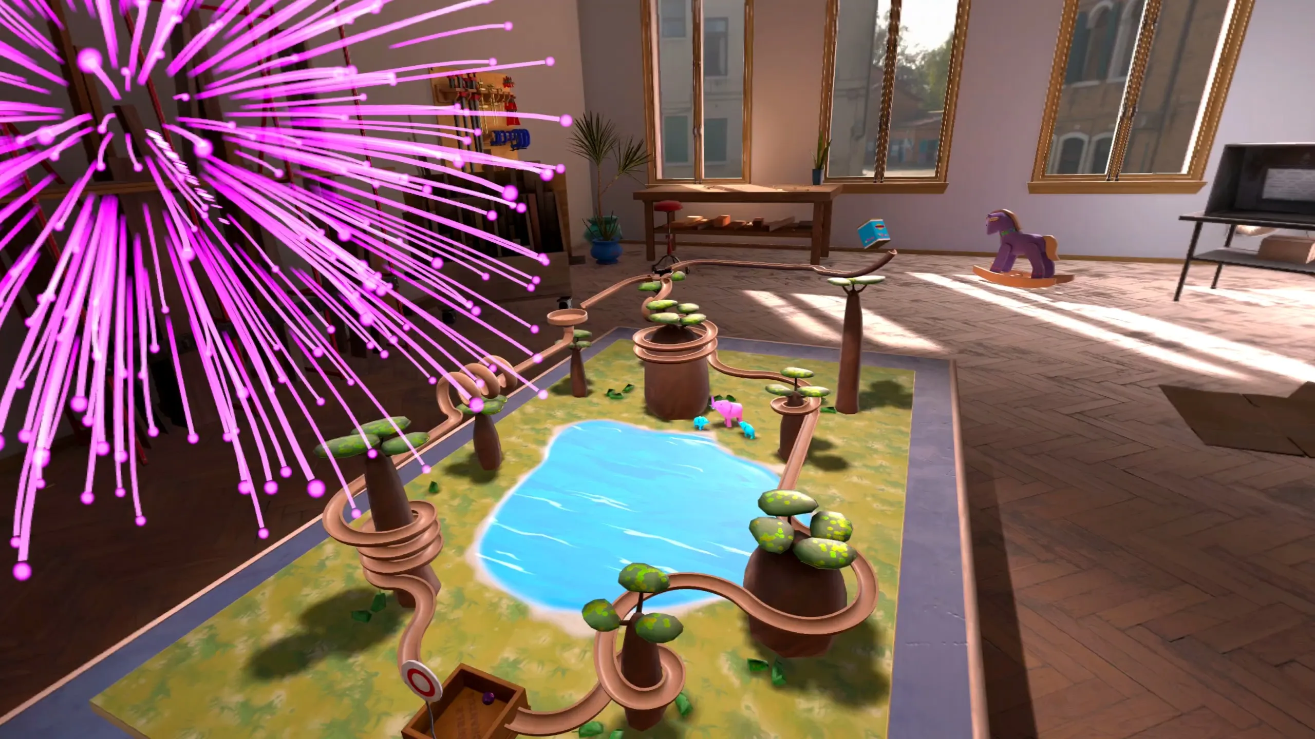 Unrealの物理エンジンをこのハードウェアで使用し、必要なフレームレートに到達することはできませんでした。 代わりに、各ピースごとに重力に従って大理石を転がす代わりに、それぞれのピースの中央に対応するスプラインに沿って転がるように強制します。 大理石は逆方向や落ちることもある。 他の大理石と衝突することもある。 ファンネルは、ファンネルの中で大理石が転がるためにラグランジュ方程式を解いて処理します。 大理石が作品に触れないためには、非現実的な物理学に従う。 私たちは常に物理学を改善する方法を探しています。 物理学の最大の欠点は何と言いますか?投稿者:開発者からの回答