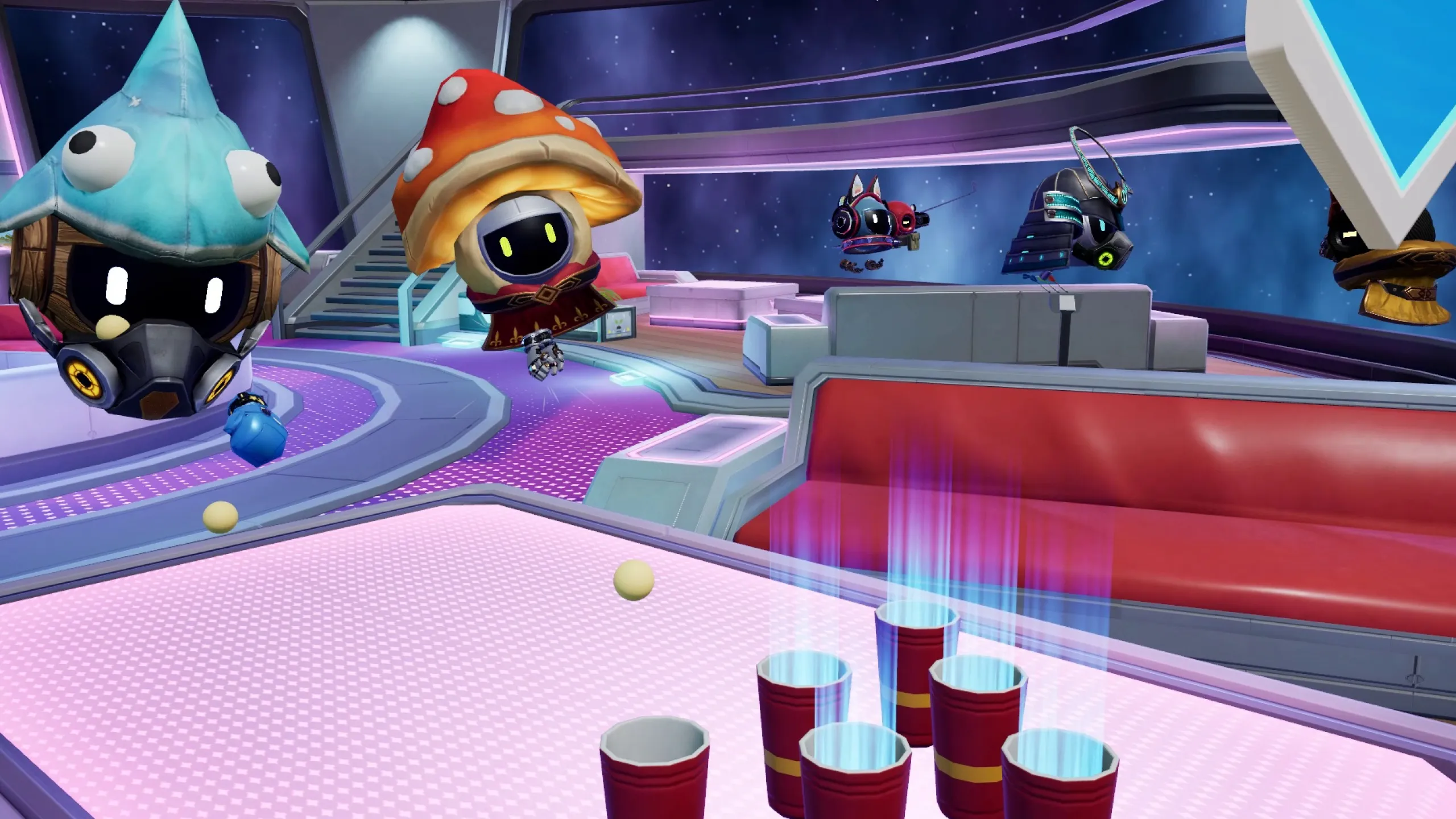 巨大なソーシャルハブ「プレイグラウンド」や「スペース・トランスポート・ハブ」では、エアゴルフやボウリングなどで他のプレイヤーと出会えます!