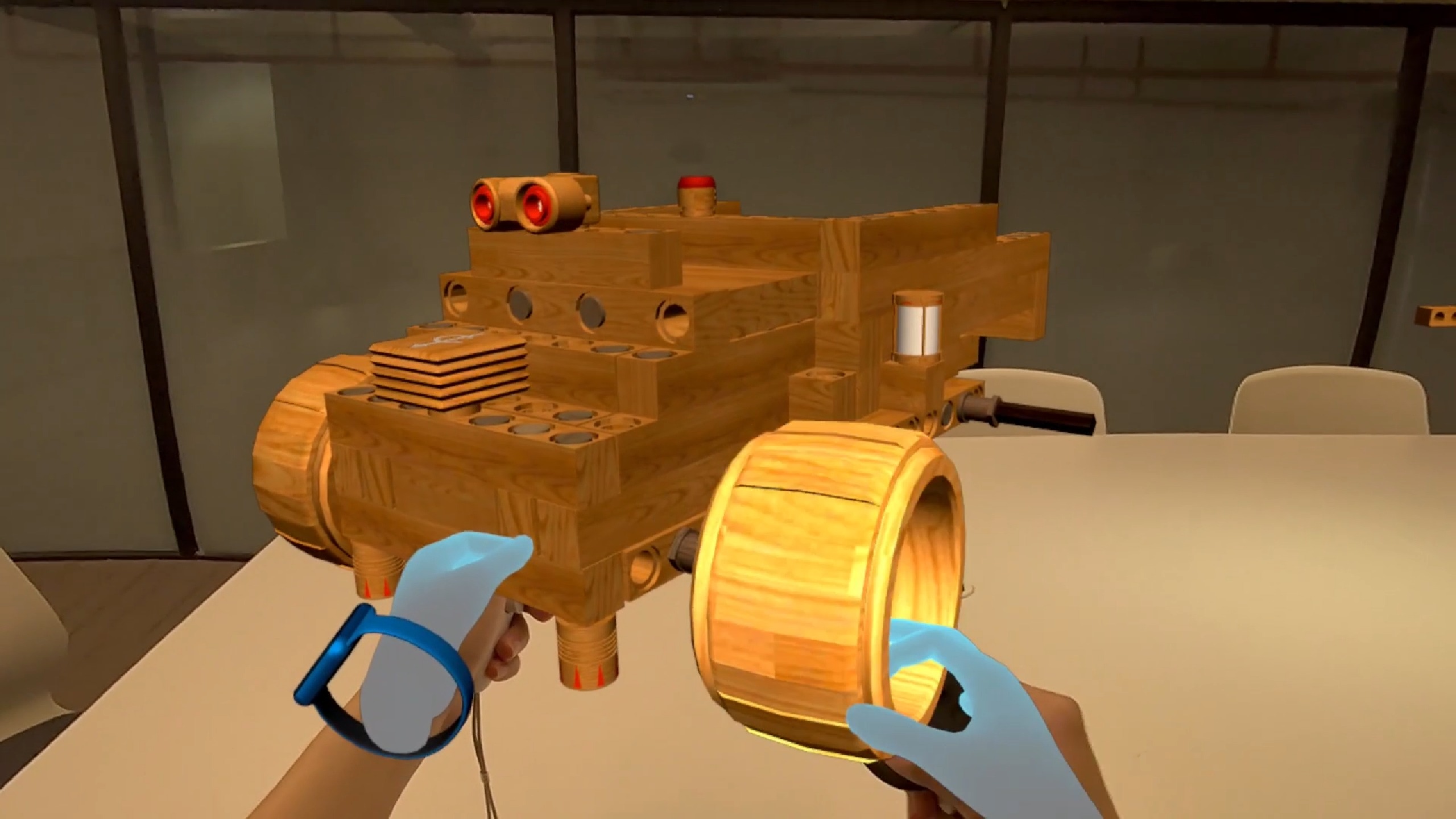 それは主に遠く離れ過ぎるものに浸透します。ほとんどの場合、あなたも。 パーツを取得する大きなボードは例えば回転できないし、サンドボックスモードのパーツが中央にない代わりに全部右側にある理由がわからない。 また、そのボードの高さを調整する方法もいいでしょう。 ゲームはこれらのものをもっと調整するか、座ってゲームプレイを考慮するために完全に再設計する必要があります。なぜなら、ストアページでは座ったままプレイできると書いてあるからです。 この種のゲームがすべて分離するのではなく、テーブル上にあるVRでどのように動作するべきか、Blockworksの例をいくつか紹介します。