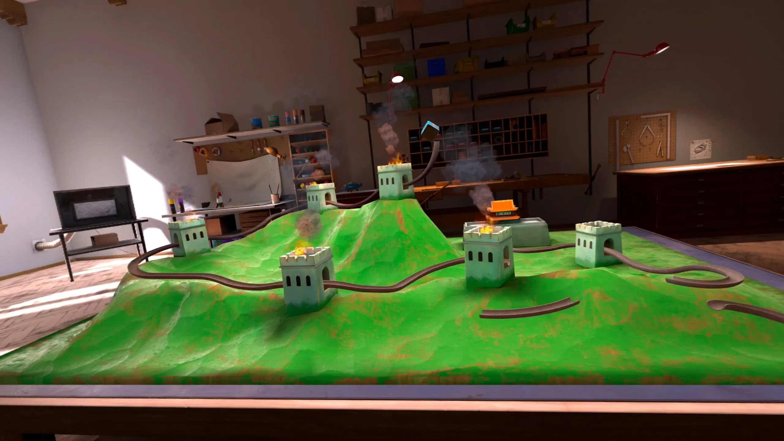 Unrealの物理エンジンをこのハードウェアで使用し、必要なフレームレートに到達することはできませんでした。 代わりに、各ピースごとに重力に従って大理石を転がす代わりに、それぞれのピースの中央に対応するスプラインに沿って転がるように強制します。 大理石は逆方向や落ちることもある。 他の大理石と衝突することもある。 ファンネルは、ファンネルの中で大理石が転がるためにラグランジュ方程式を解いて処理します。 大理石が作品に触れないためには、非現実的な物理学に従う。 私たちは常に物理学を改善する方法を探しています。 物理学の最大の欠点は何と言いますか?投稿者:開発者からの回答