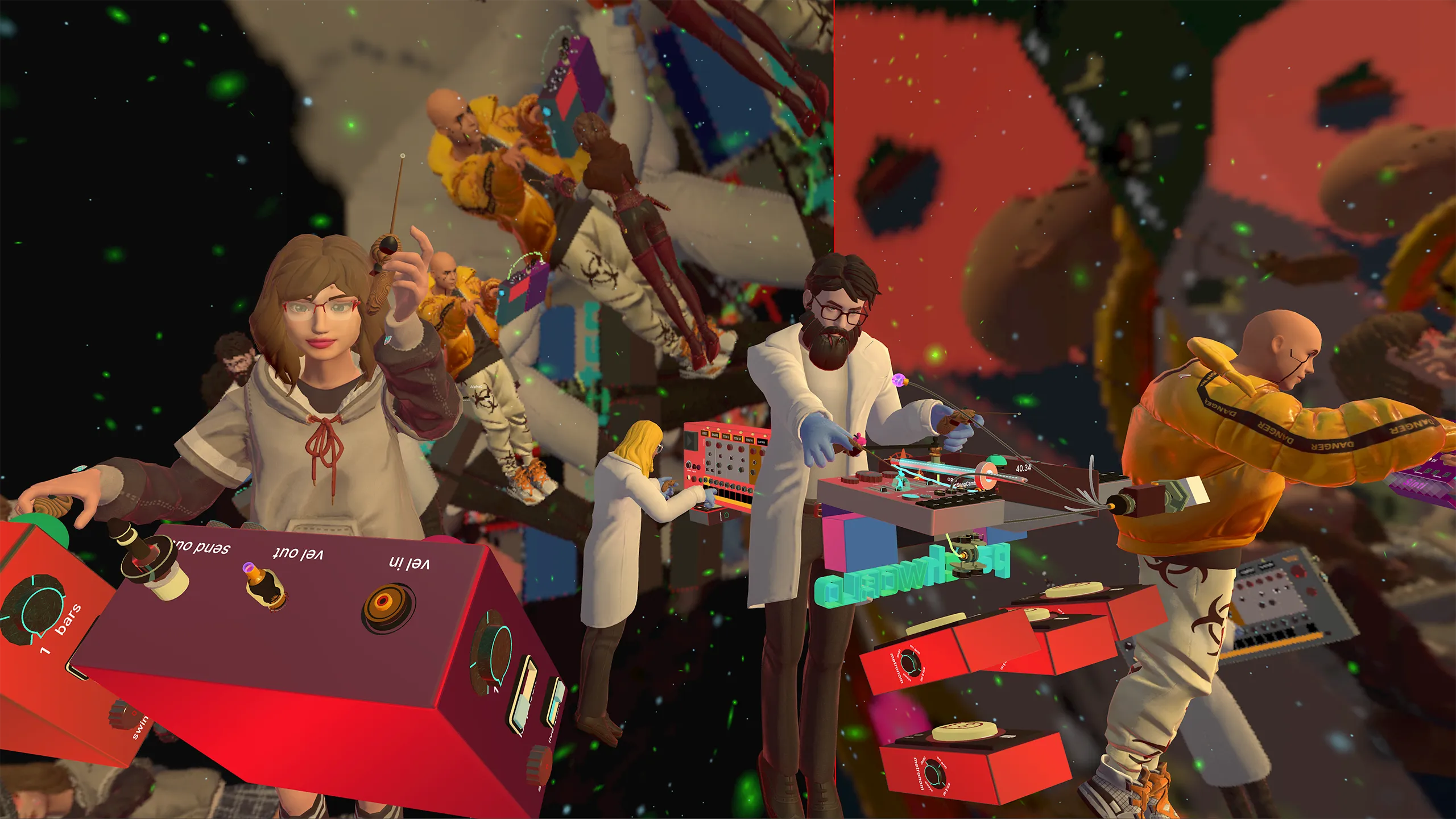 それはただの音楽アプリじゃない。 それは物理シミュレーションと同様に世界の構築とメタバースの側面を少し持っています。 つい先日、ドラムのサンプルをシークエンシングしていたところ... 部屋に一人がロボットを作っていた。他の人は光線を曲げるために数学の部品をつなげていた。