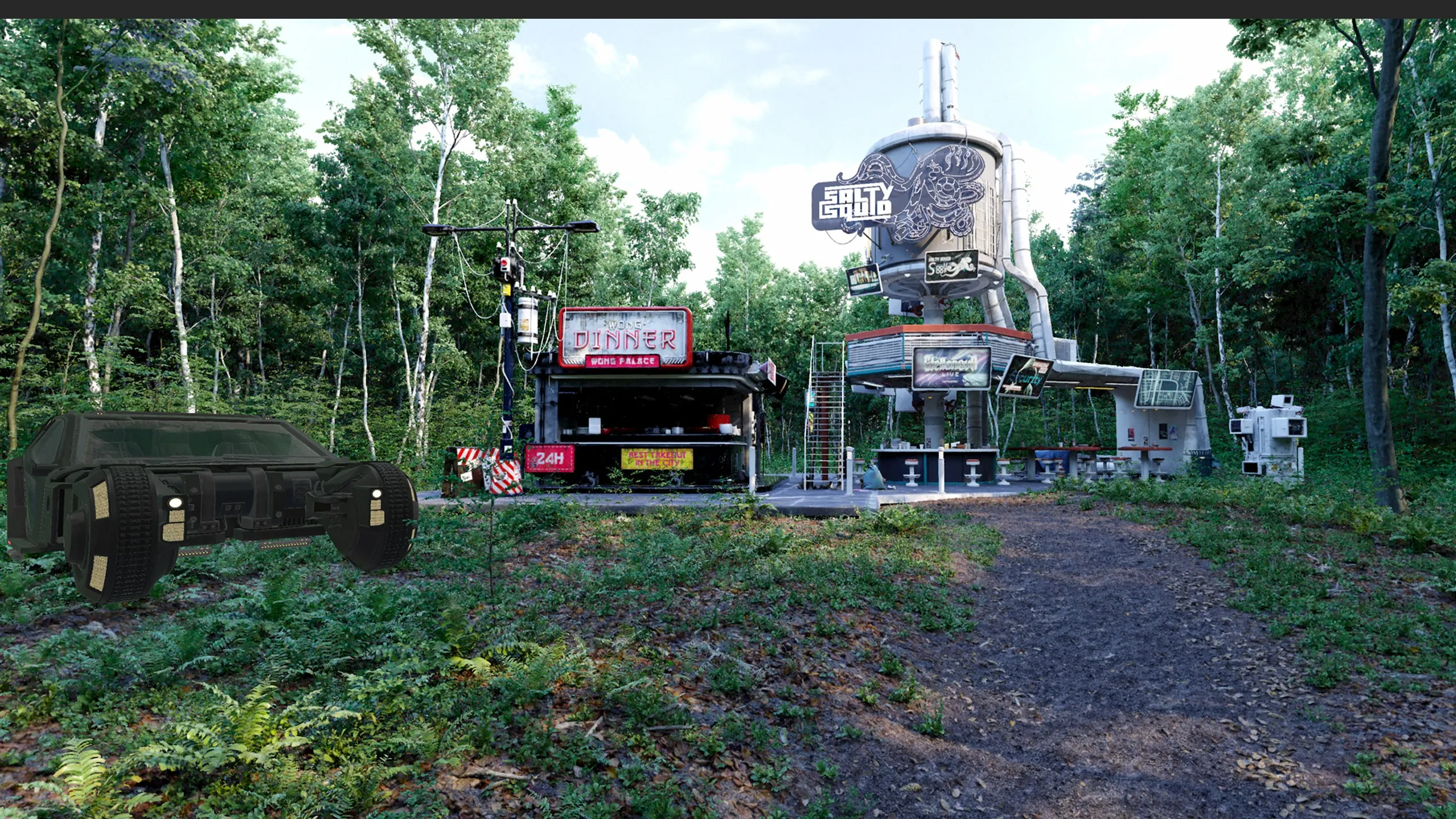 まるでサイバーパンクゲームの要素が端にある本物の森に立っているようなものだ。 OK、ロコモーションは違うボックスへのテレポートだけではありませんが、現実的な環境を見回すのはまだとてもクールでした。