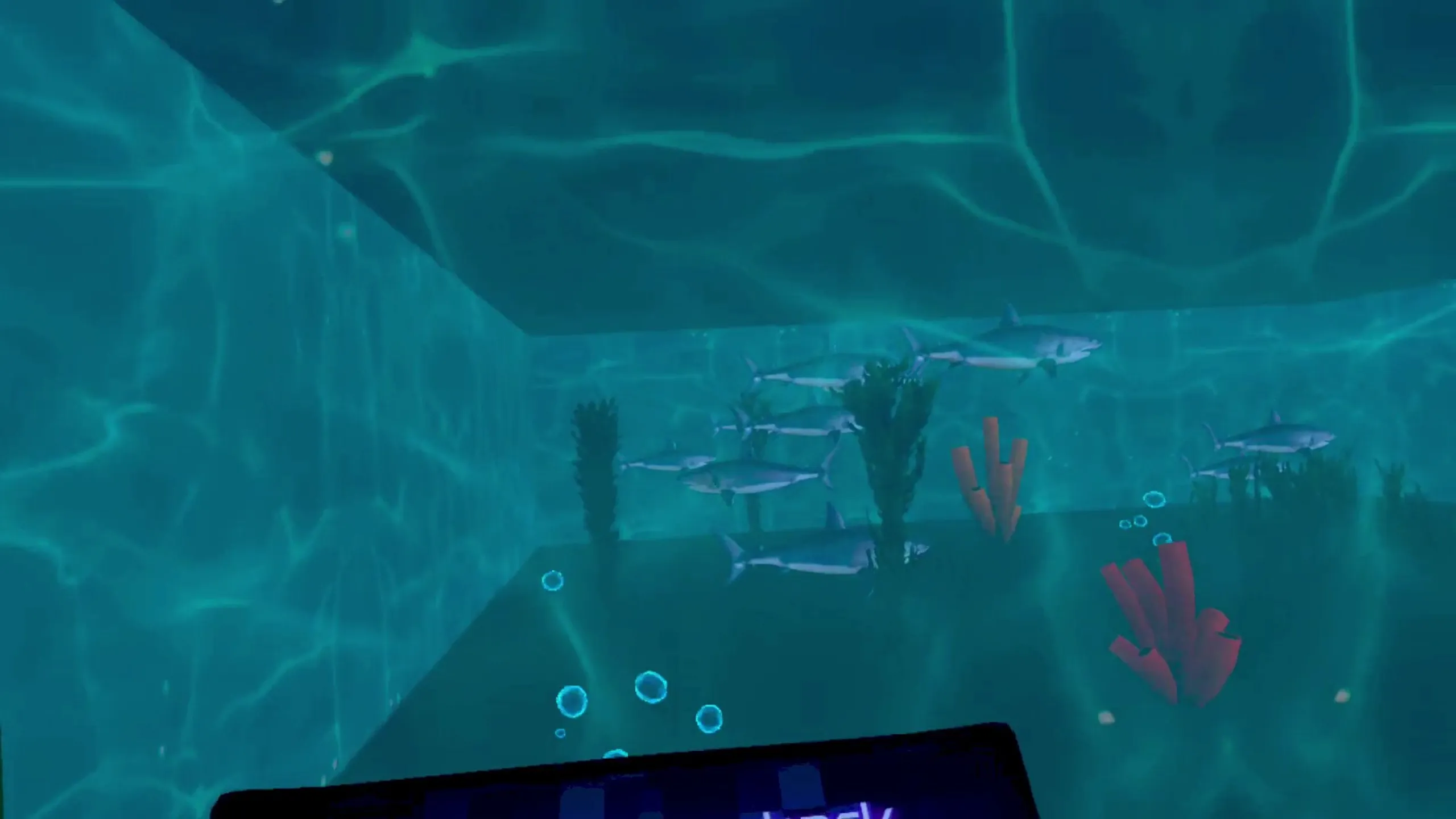 バーチャルアクアリウムは、魚、亀、サメ、マンタ光など異なる種類の水生動物を観察できるVR体験で、観る各水生に関する情報があります。この水族館では38種類の水生動物がいます。