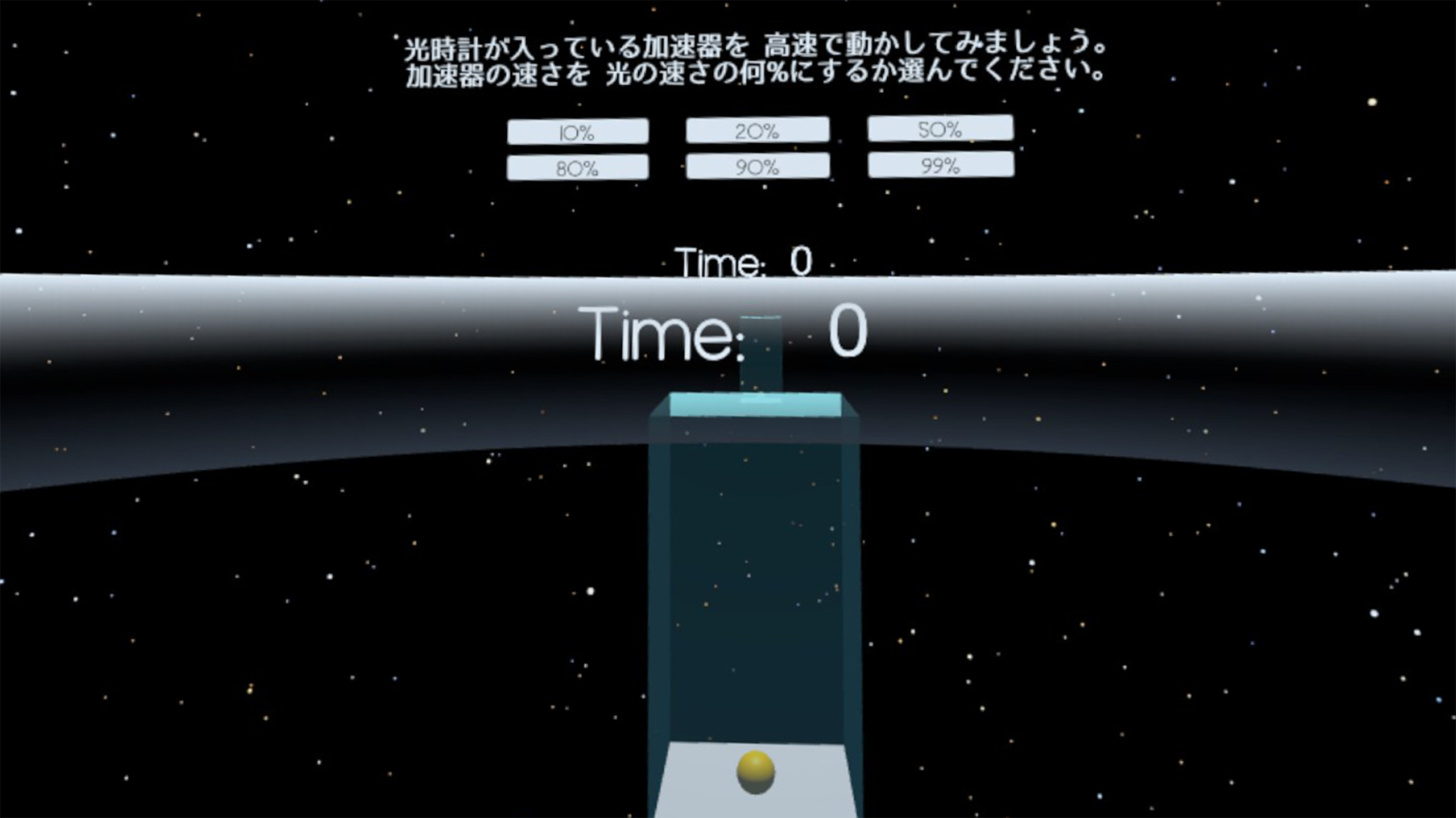超高速での宇宙旅行へ出かけて、実際にどのくらいの時間が遅れるのかを体験できます。