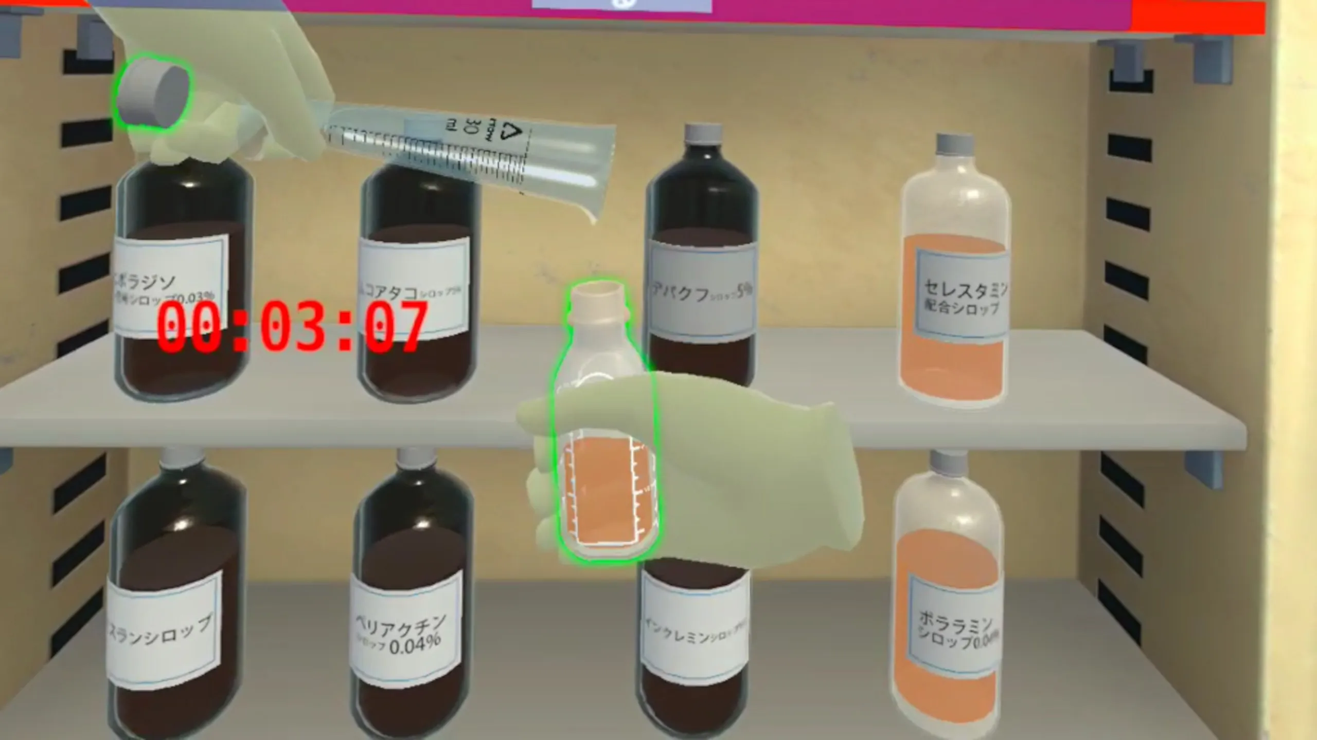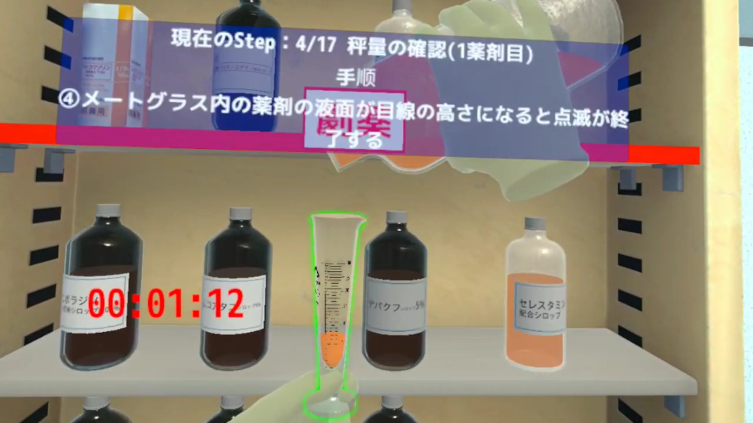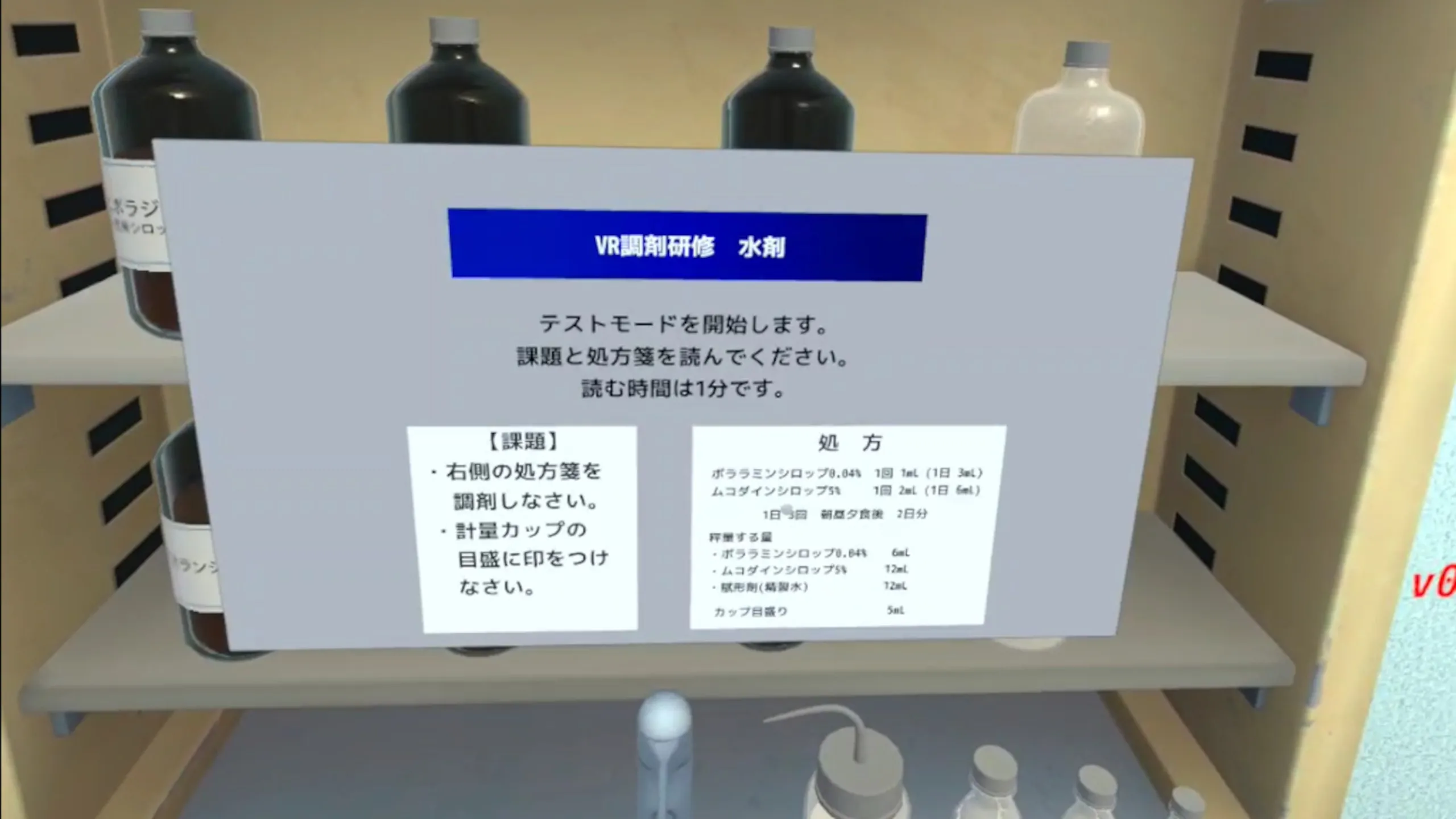 剤研修の中の水剤をVR上で実施するためのアプリケーション