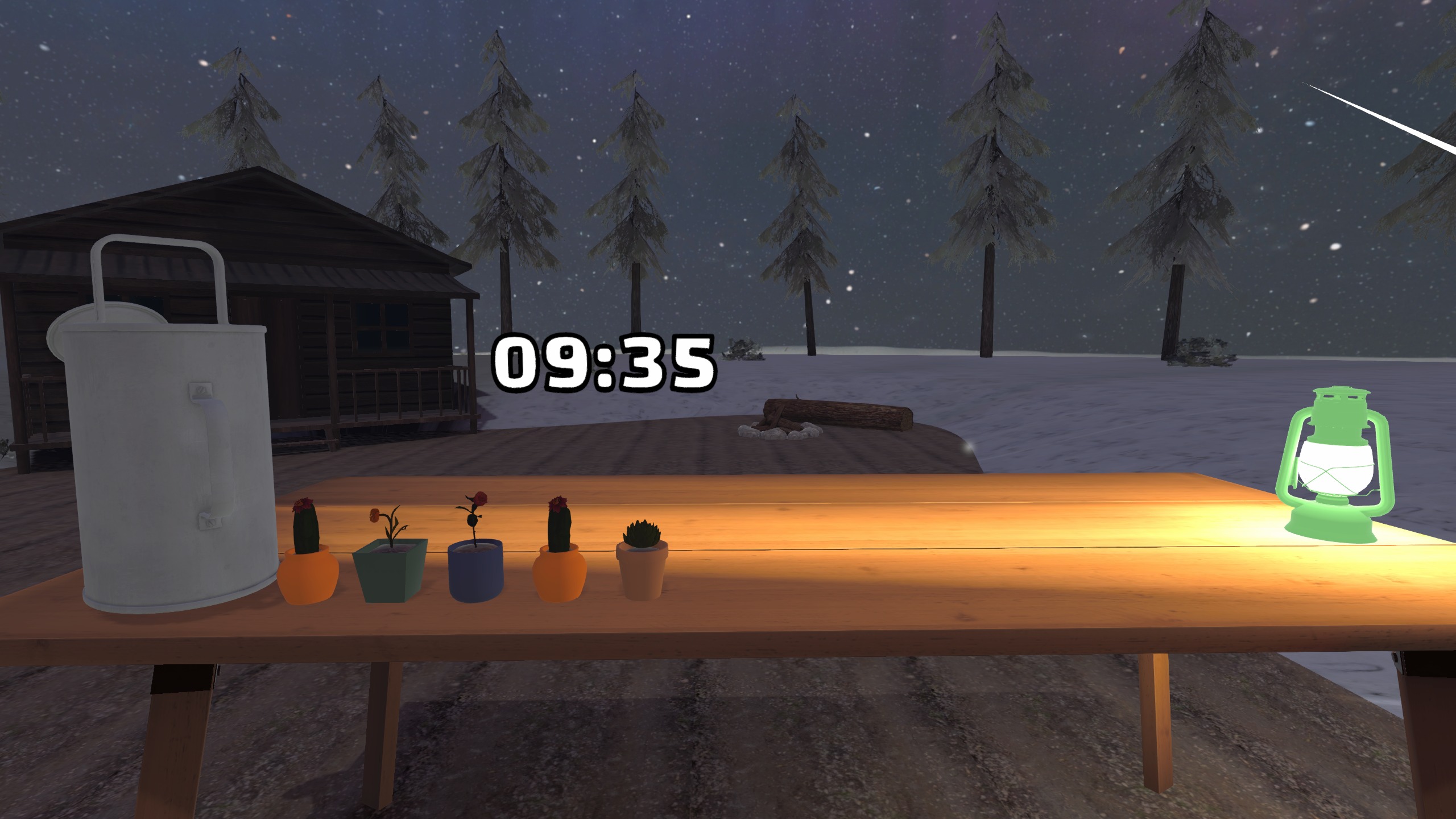 庭:利用者が植物を拾い、棚に置き、水やりを行い、コーディネーションと機能的な動きを促進するリラックスアクティビティ