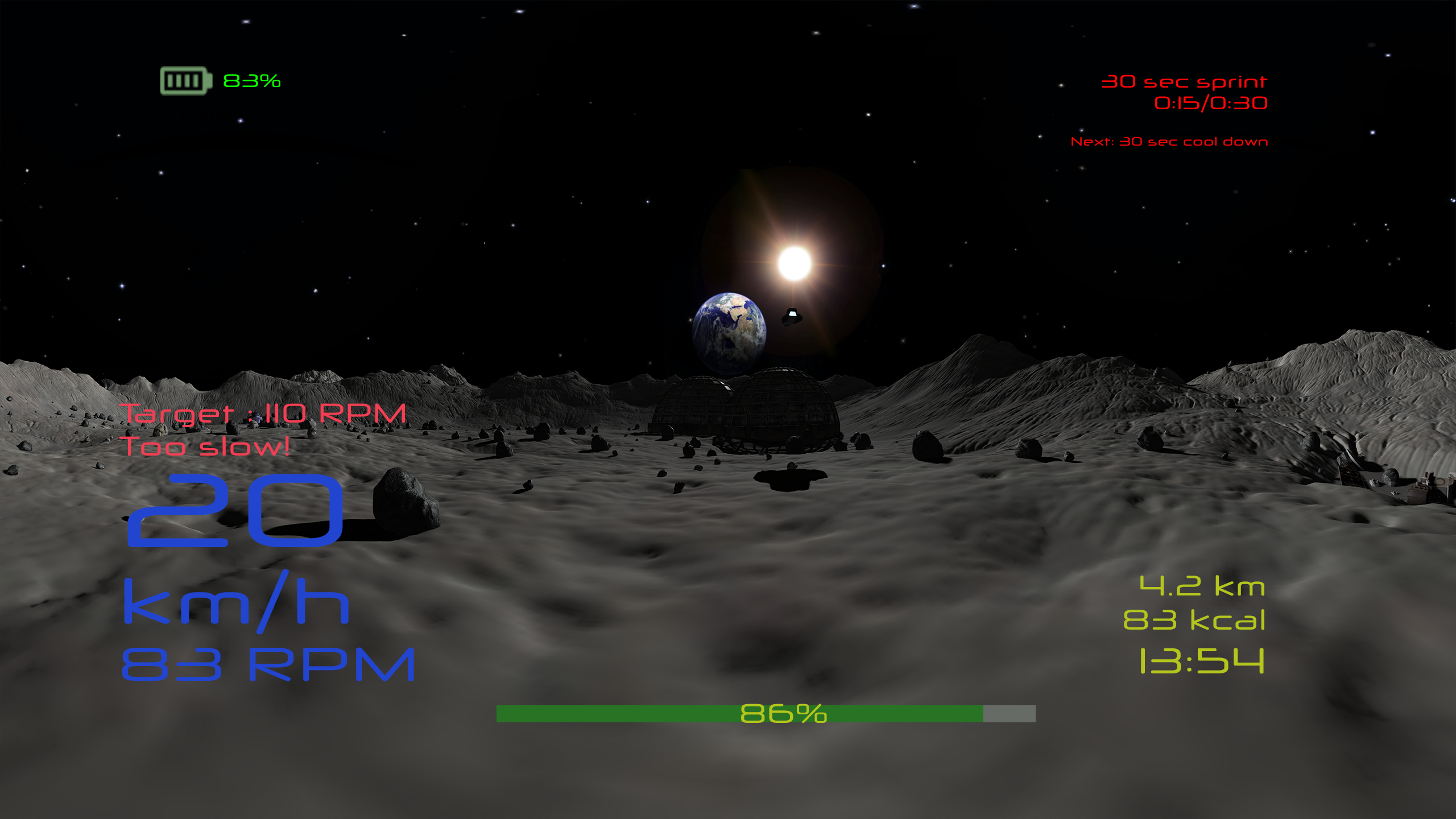 アプリはスマートトレーナーとペダル、ケイデンス、心拍センサーとBluetoothで通信します。