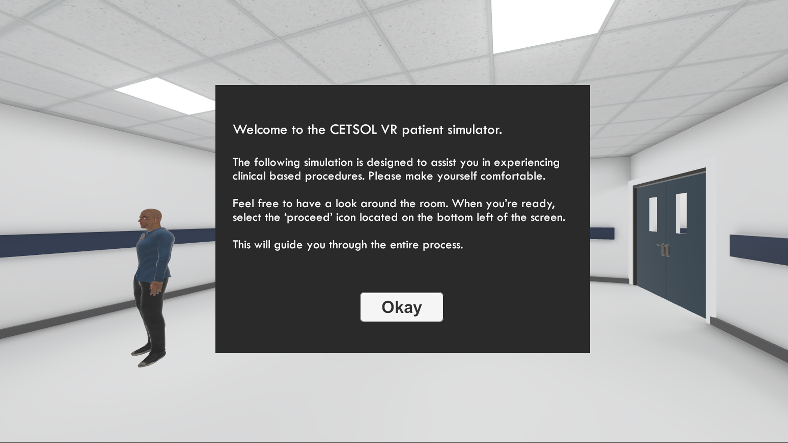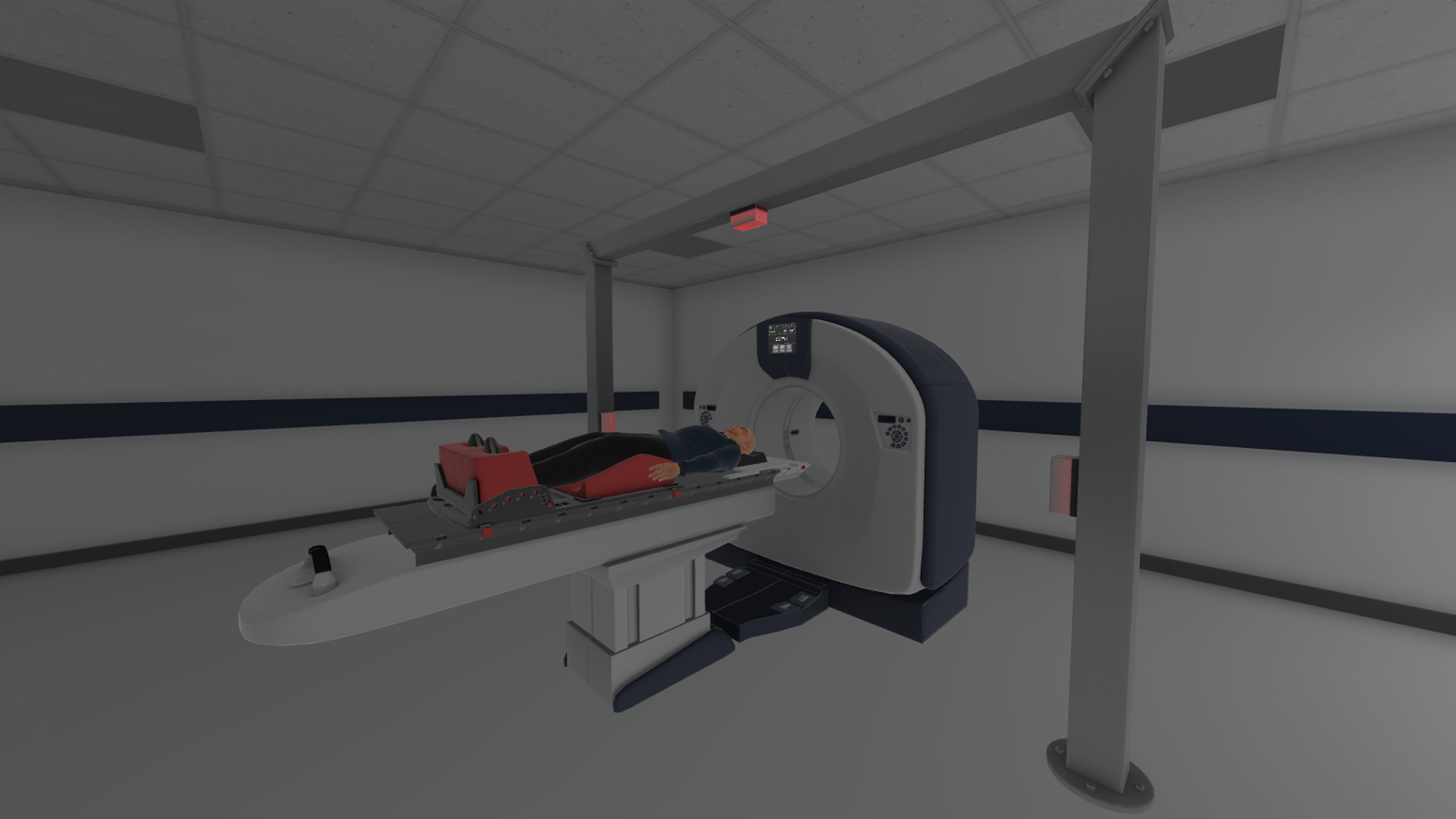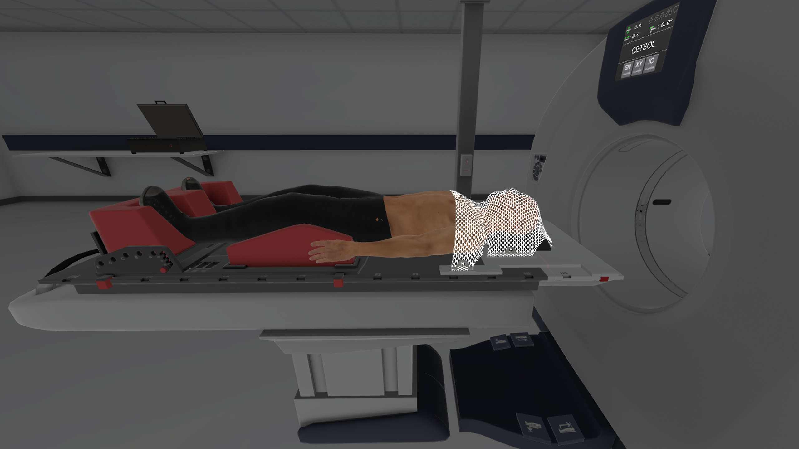 ユーザーはまず仮想患者が放射線治療マスクを作られたのを目撃する。 このプロセスでは、シミュレーションルームを歩き回り、部屋の設置と手順の位置を間近で見ることができます。