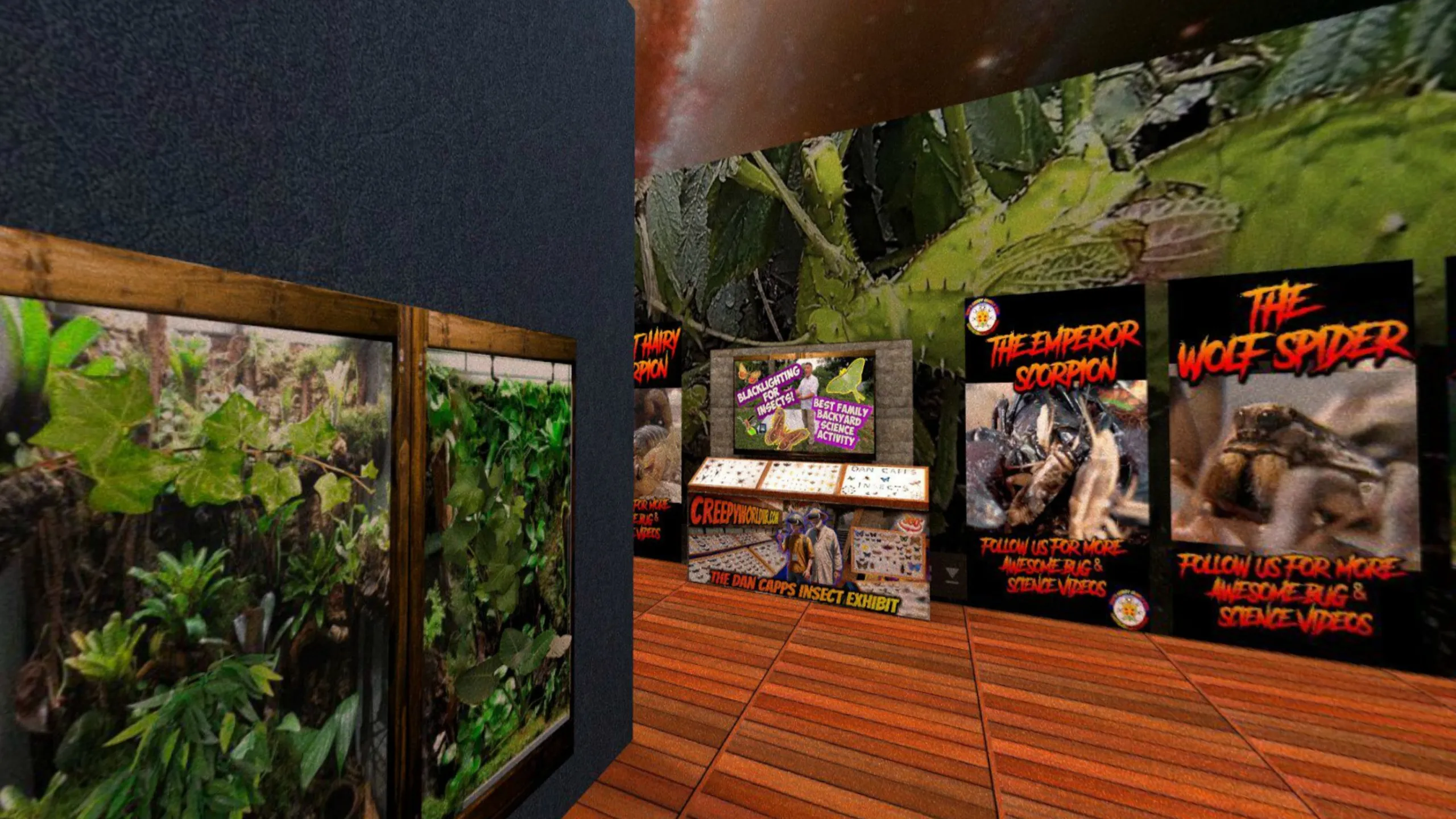 噛まれることなく、タランチュラの隠れ家を探索したり、サソリ、ヘビ、トカゲと空間を共有する夢を見たことがありますか? Creepy Crawly Zoo 2.0がこのセンセーショナルな夢を現実に! 息をのむようなマクロ360°バーチャルリアリティを通して、実際の生息地に没入しましょう。これらの信じられない生き物たちと、あなたを直接一緒に置きます。