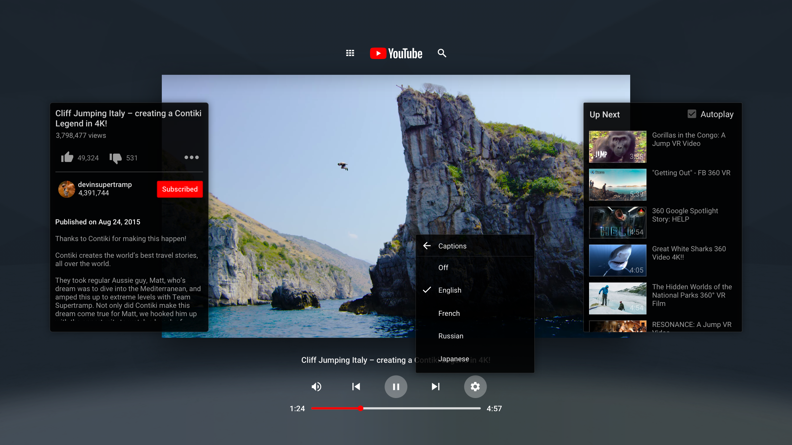 気に入りの YouTube チャンネル、動画、クリエイターをバーチャル リアリティで楽しめます。