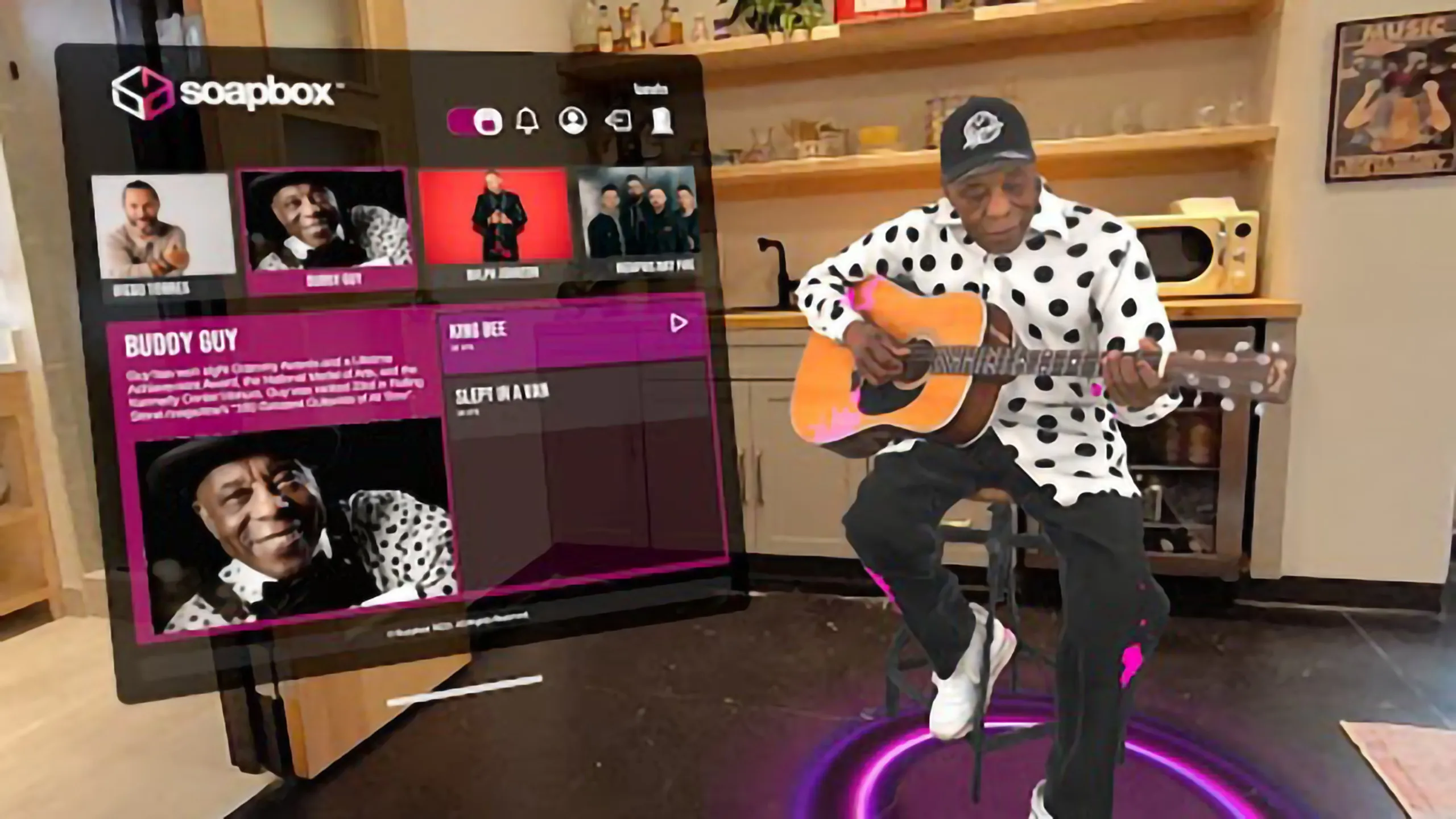 360°ボリューム動画で撮影されたアーティストとのユニークな音楽の没入は、48カメラシステムで撮影され、リビングルームに物理的に現れるような印象を与えます。