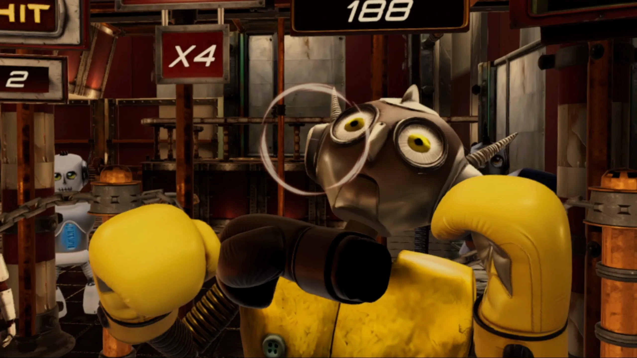 アと蒸気のジムでロボットを打ち砕け!スパーリングモードで自由に戦うか、リズムモードでビートに合わせてパンチし、王座を勝ち取れ!