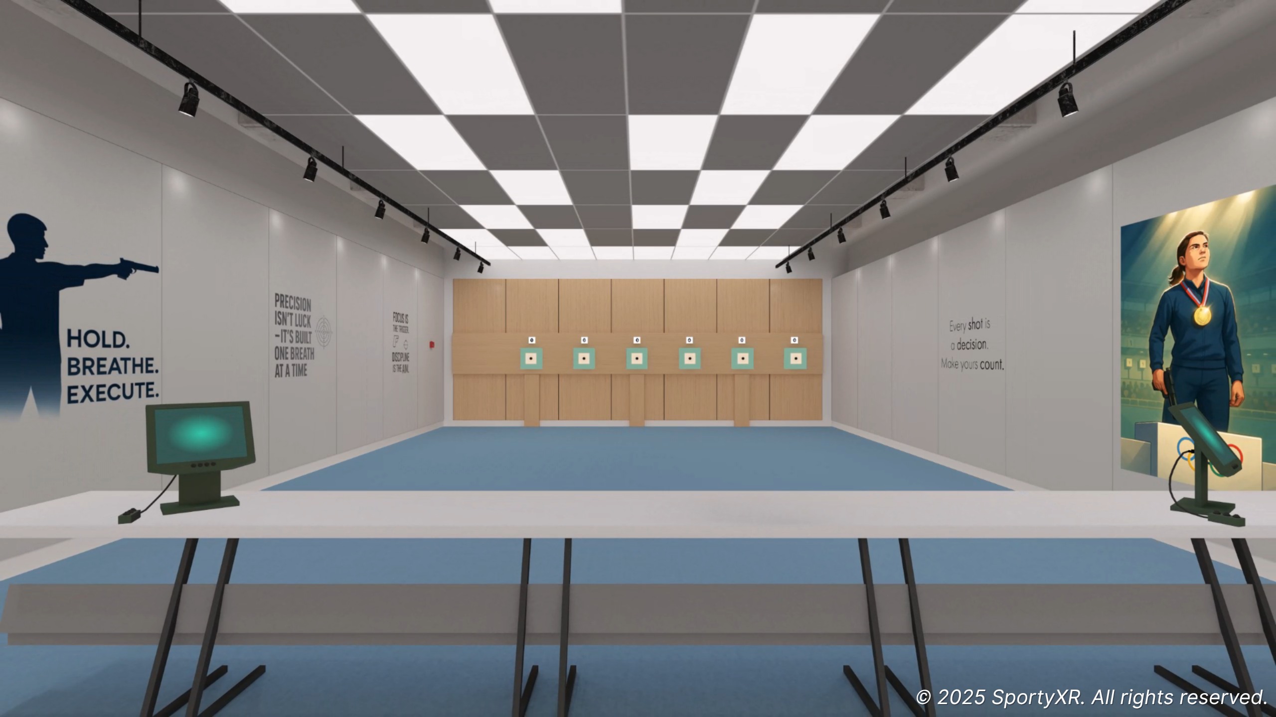 あなたの部屋、学校、トレーニングセンターからすぐのところから、ライフライクなオリンピック10mピストルアリーナに足を運んでください。 旅行はなし。 高価なギアはない。 純粋な集中、規律、そして練習。