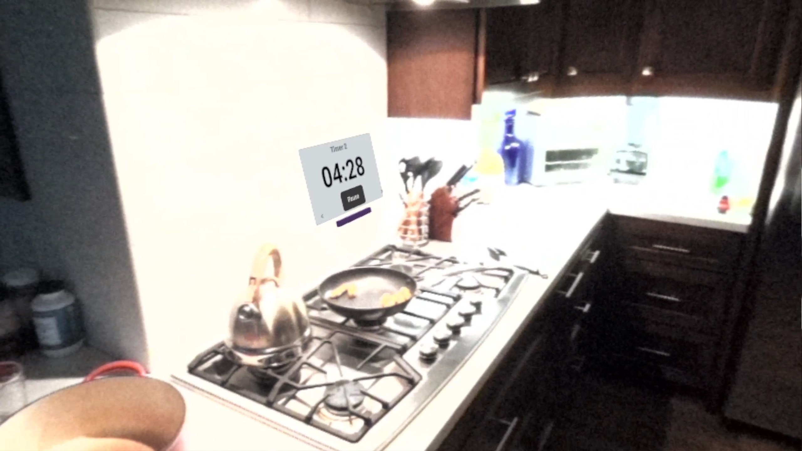 手を使ってタイマーボタンと対話する。