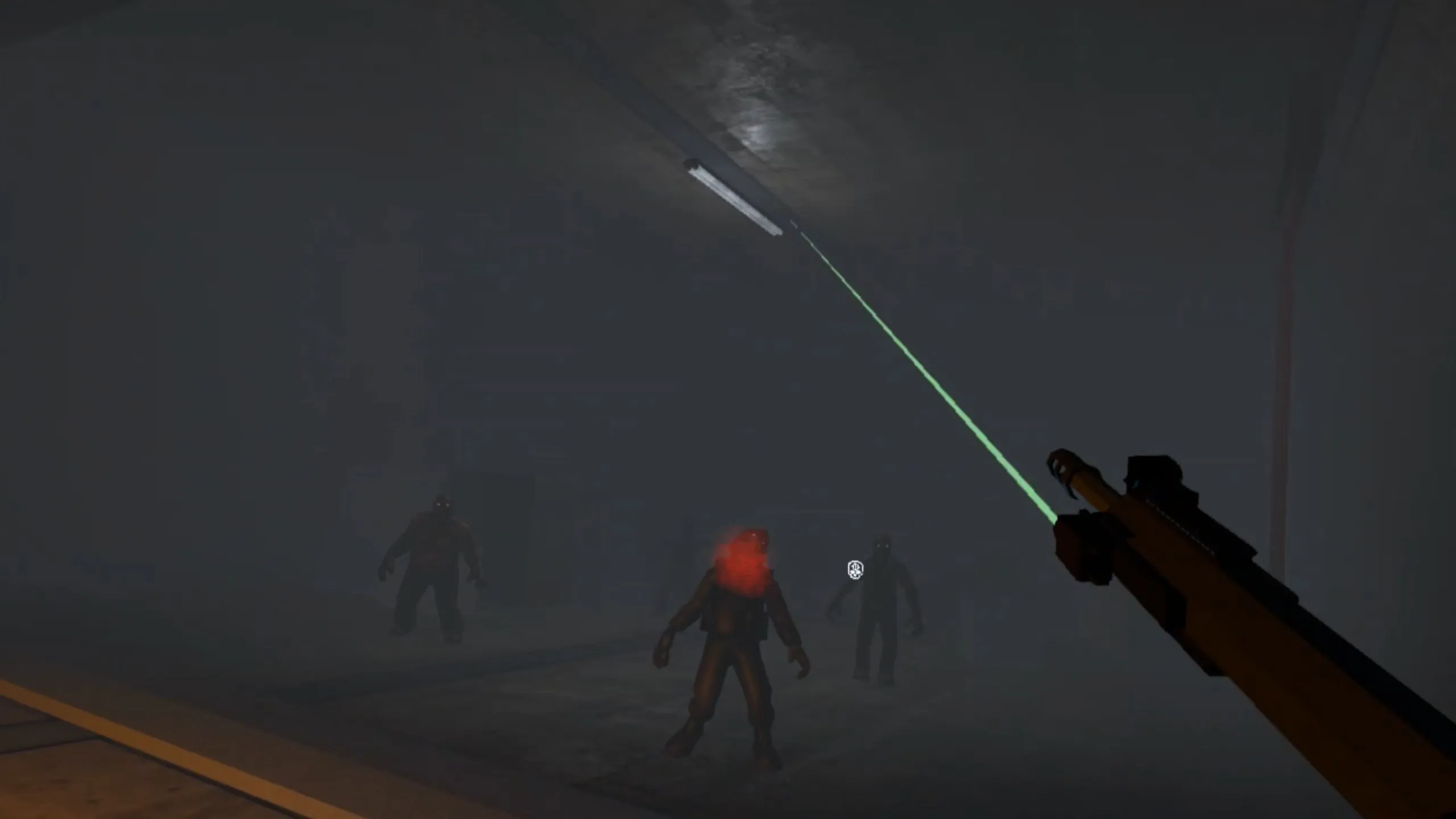 スターティングレーザーサイトはヘッドショットを満足させ効果的です。特に真っ黒な廊下では。 賢い戦略の重ねづけもあります - 懐中電灯は時間が経つと消耗するので、嫌なサプライズ(そして不時着の死)を望まない限り、バッテリーの掘削は非常に重要です。