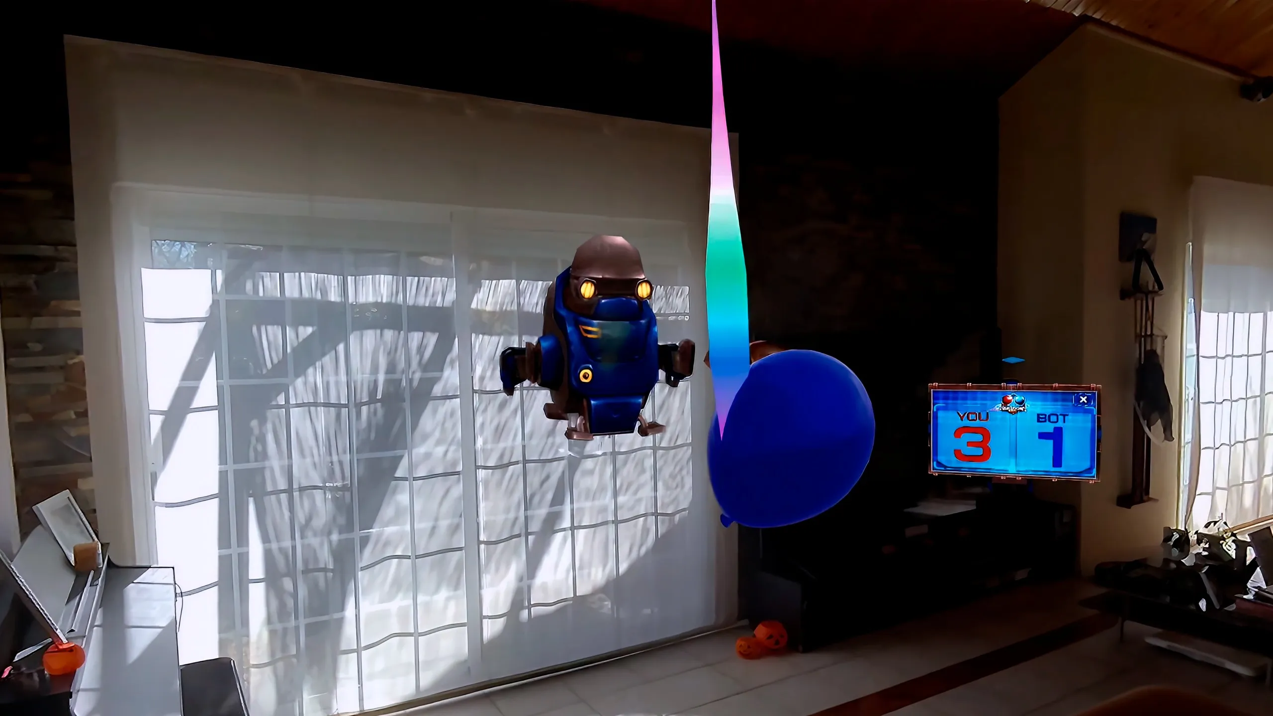ミックスドリアリティの力で、Balloon Duel はあなたの家をリアルなプレイグラウンドに変える。風船は家具に当たって弾み、ポータルを通り抜け、ファンの風をかわしながら、いつもとは違う動きを見せる。