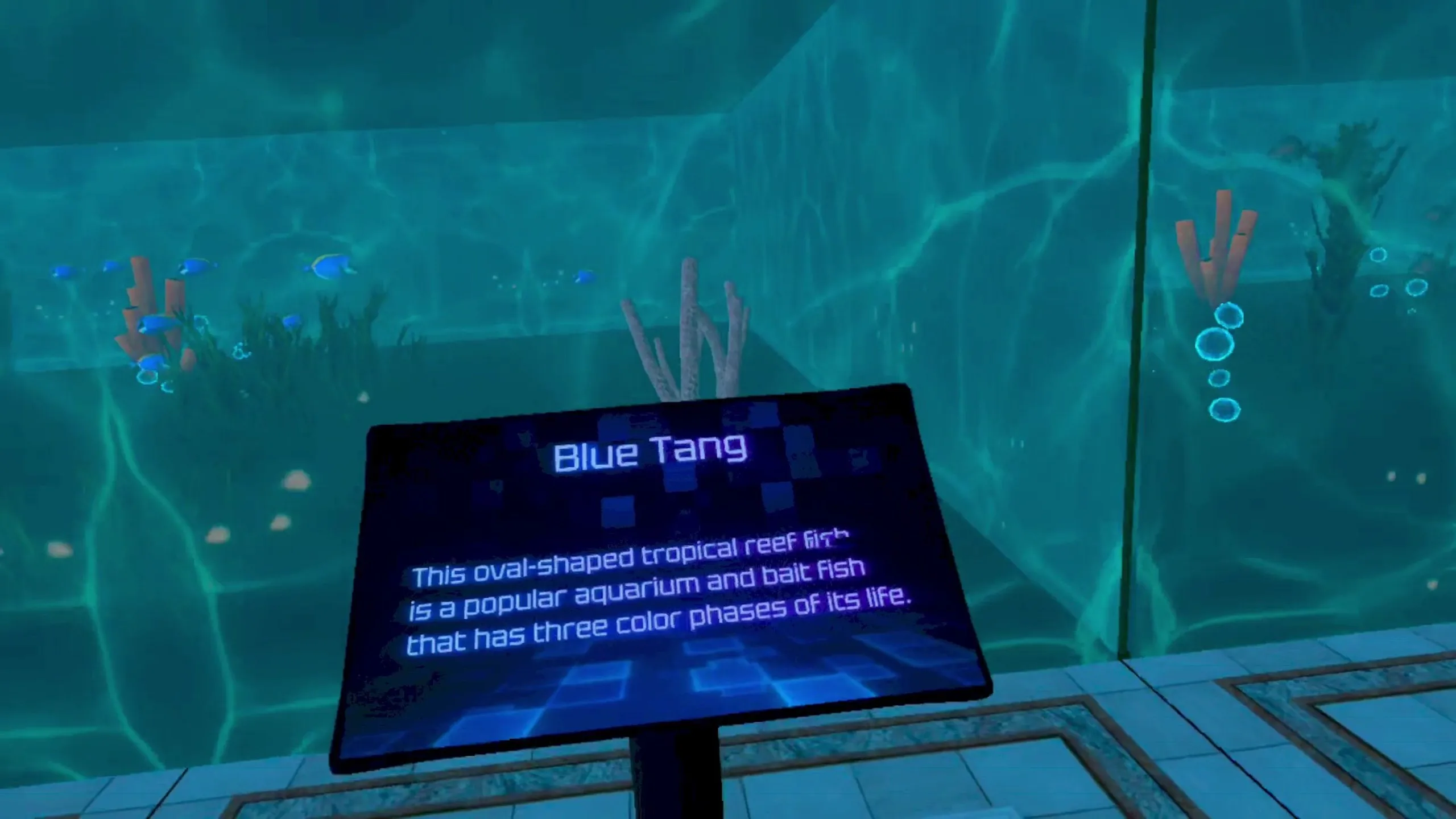 バーチャルアクアリウムは‏、‎魚、亀、サメ、マンタ光など異なる種類の水生動物を観察できるVR体験で‏、‎観る各水生に関する情報がありま‏す‎。こ‏の‎水族館では38種類の水生動物がいま‏す‎。
