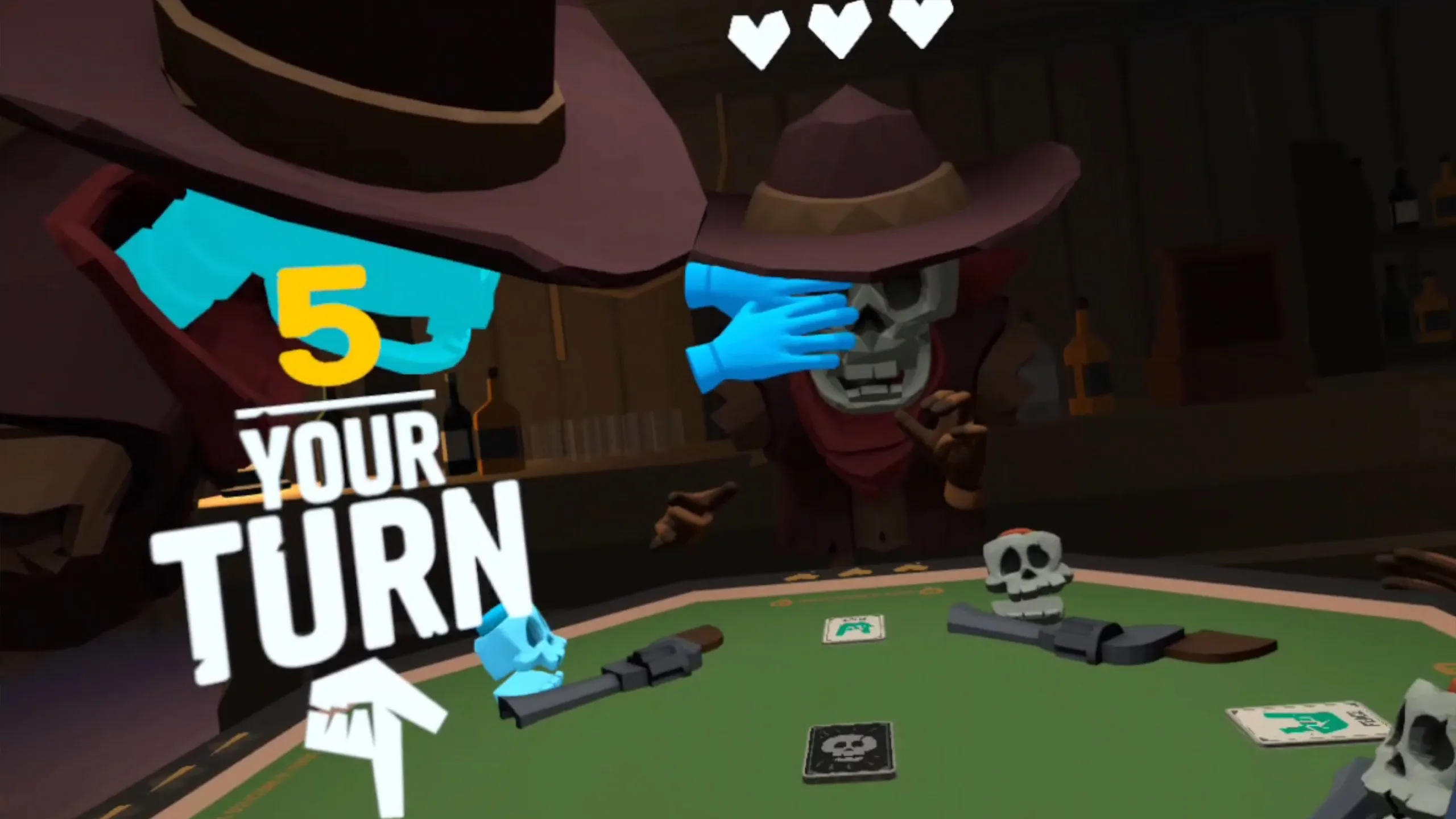 Deadeye Saloonへようこそ。コントローラーなし、動きなし、手間なしで楽しめるシンプルで遊び心のあるVR対決。 ** ただ座って、手を挙げて、あなたの仕草で決闘を決めさせてください。 このサロンでは、勝利はマッチするカードペアを認識することから生まれます。 ** ペアが見える? 素早く右手のジェスチャーを形成最初にストライクし、相手を上回る。 速読と速い手がラウンドに勝つ。 純粋な快適さを求めて設計された、あなたの最もリラックスした場所で、ヘッドセットと手のみを使用して座って遊ぶことができます。 Deadeye Saloonは現在Betaにあり、より多くのルール、アイテム、モードが進行中です。 軽やかな決闘のために今すぐ飛び込んでください - 今後のアップデートでサロンが成長するのでご期待ください。