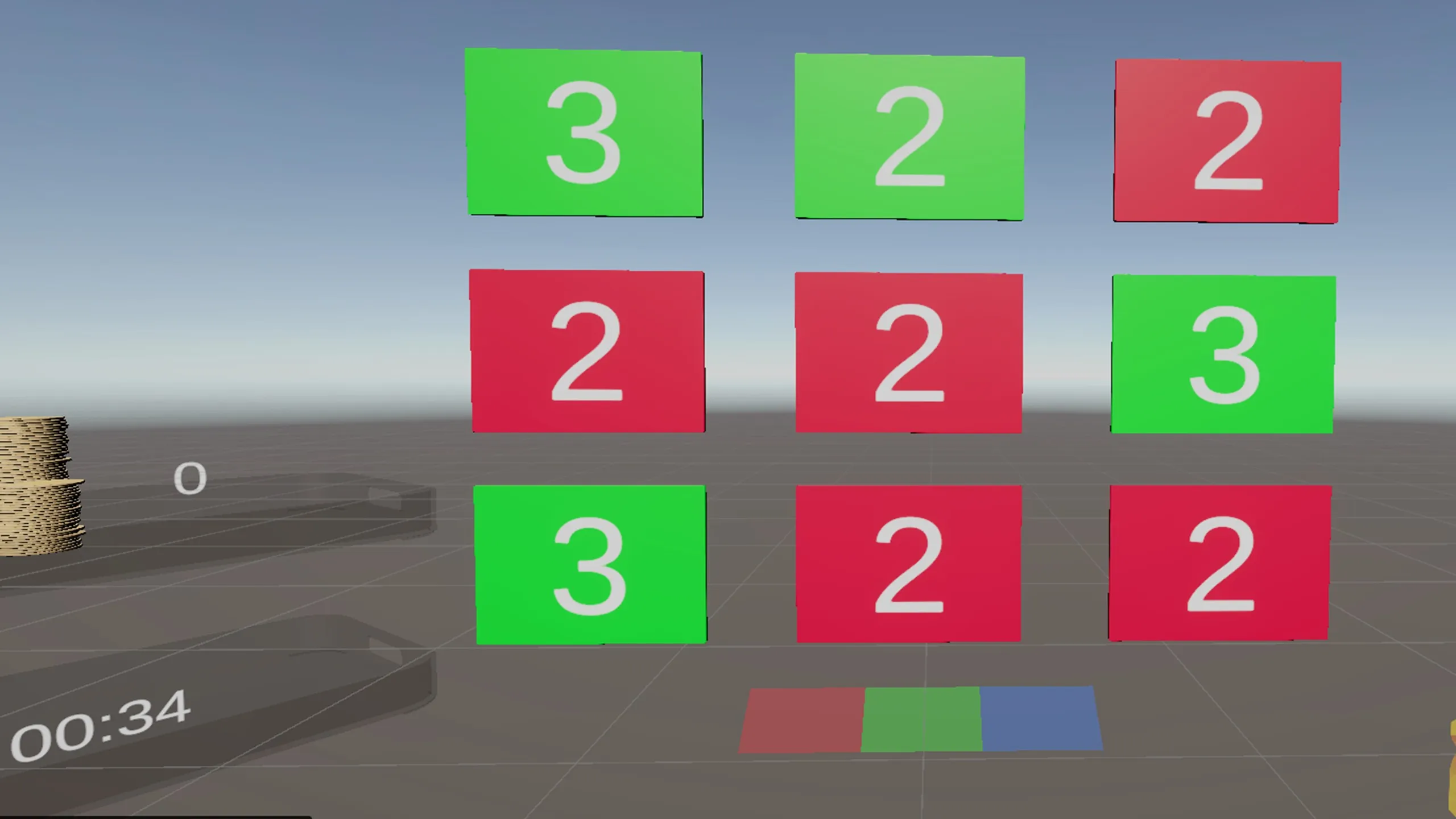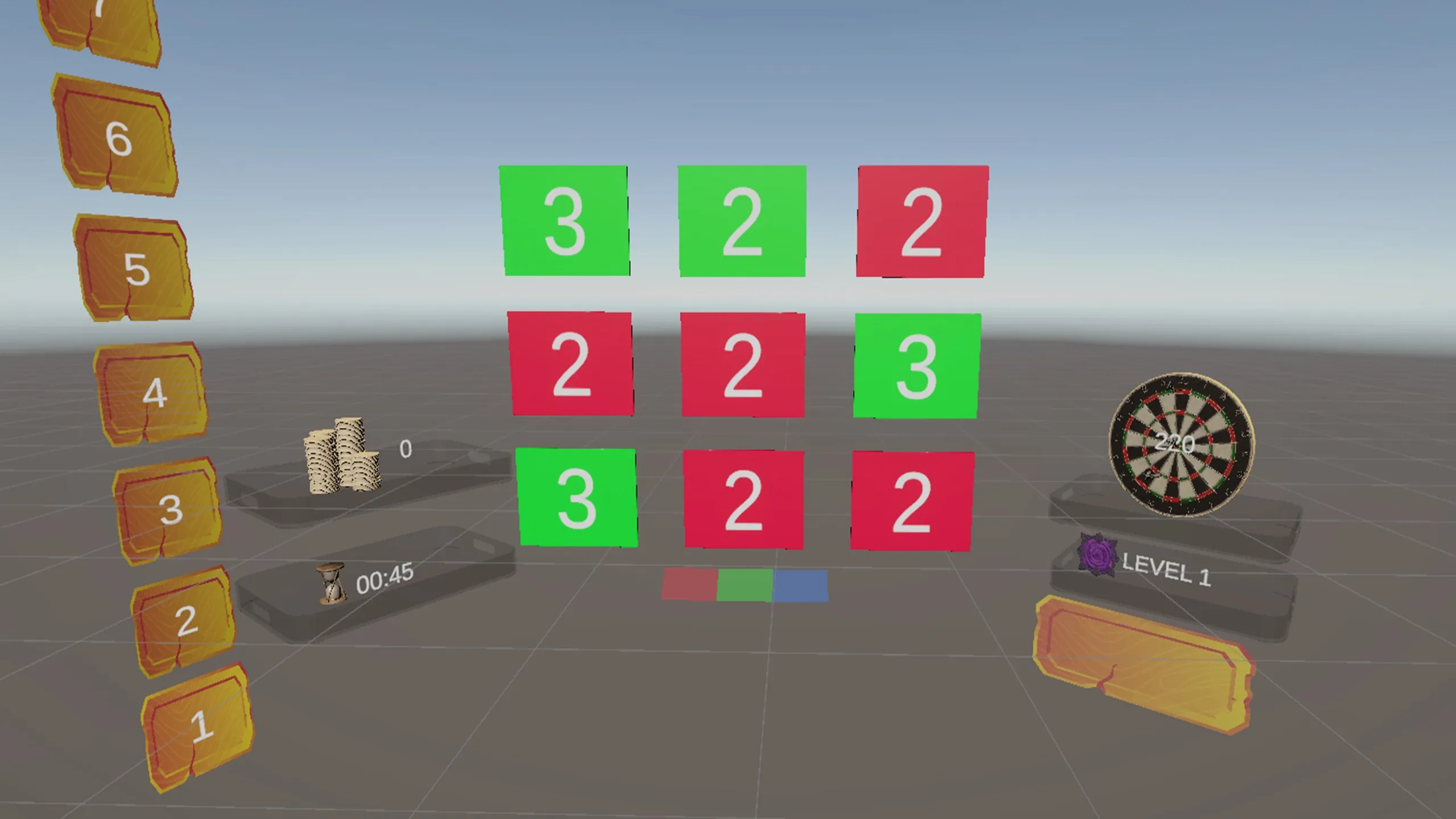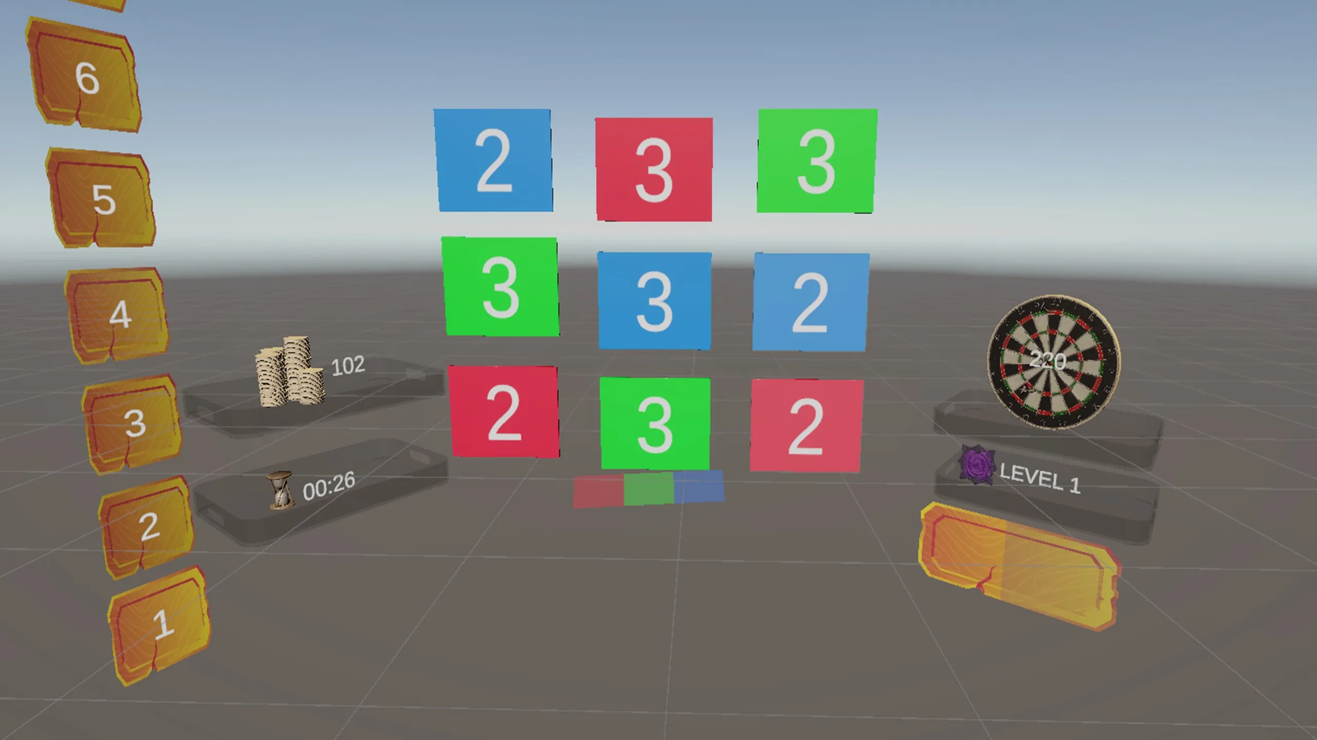 カードカラーは、一つの動きを考えることにフォーカスしたVRパズルゲームです。 あなたはカラフルな番号付きカードのグリッドに直面しています。 各タップはカードを次の色に回転させ、残りのタップ数を減らします。 同じ色のカードを3枚以上並べてクリアし、ポイントを貯め、余分な時間をゲットしよう。 時間やタップがなくなり、レベルは終わった。