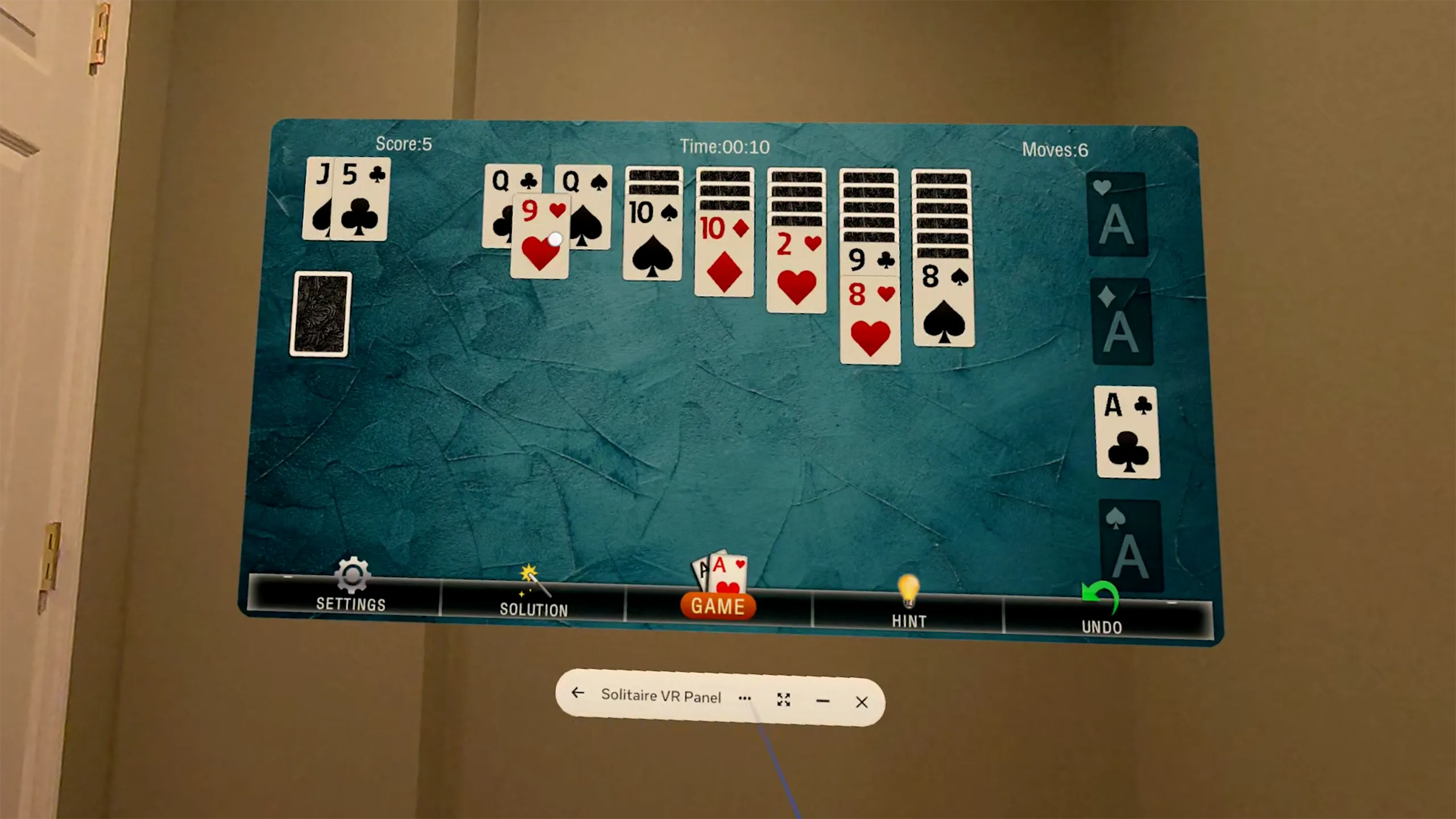 Solitaire – VR Panelは、Meta Questでマルチタスク用に作られた古典的なカードゲームです。