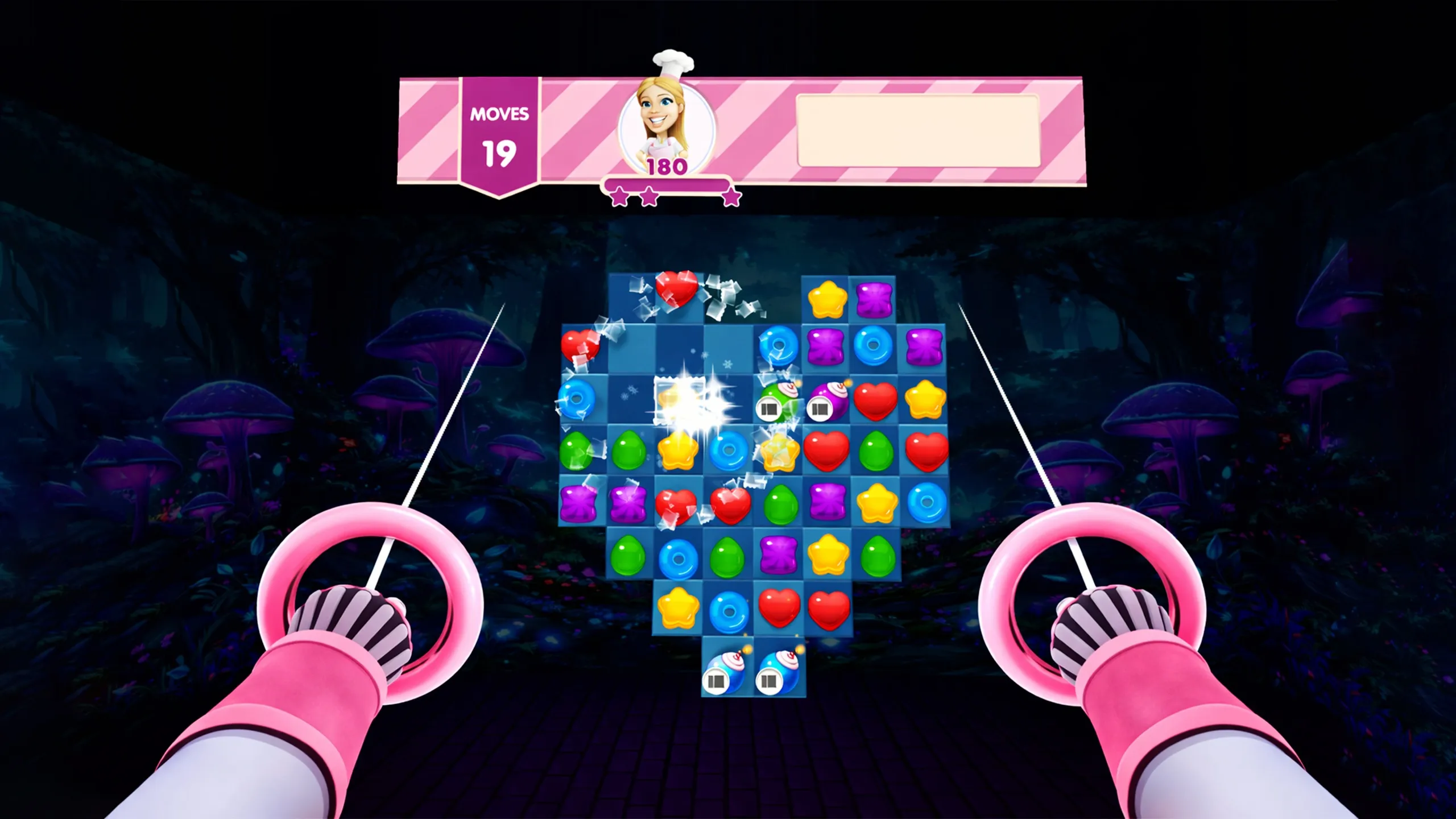 Touchコントローラーを使用してVR内で直接キャンディをマッチさせま‏す‎。